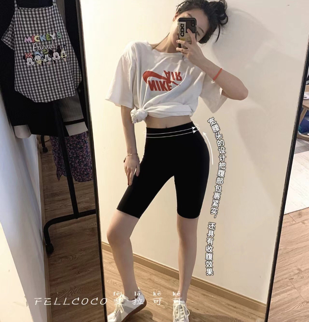 不会吧不会吧!不会还有人夏天不穿骑行裤吧!这条是我去年买的醉喜欢的一条鲨鱼裤了,五分裤长夏天穿也不会热,面料也很透气,运动瑜伽都可以穿!宽腰头的设计把腹部包裹紧实!提臀效果也很好!