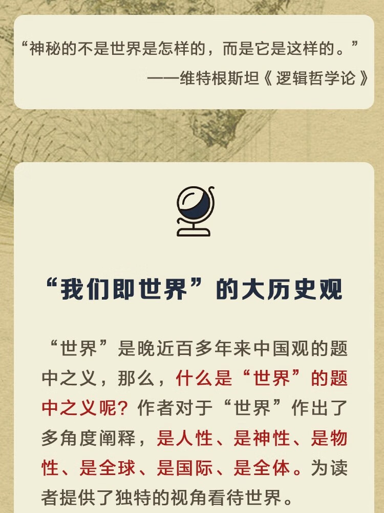 2.作者视域开阔,体力宏大,纵横古今中西,通过“我们即世界”的大历史观强调“世界”方是万是世界的中国观的题中之义,体现出一种严谨、包容的治史态度。