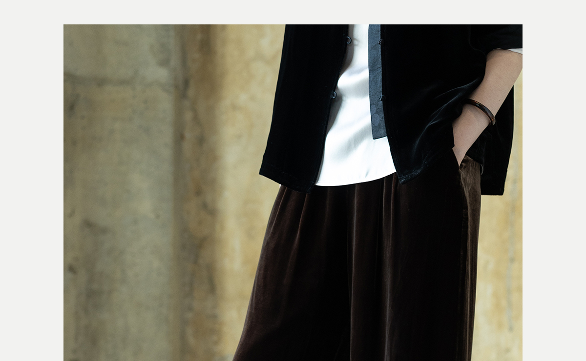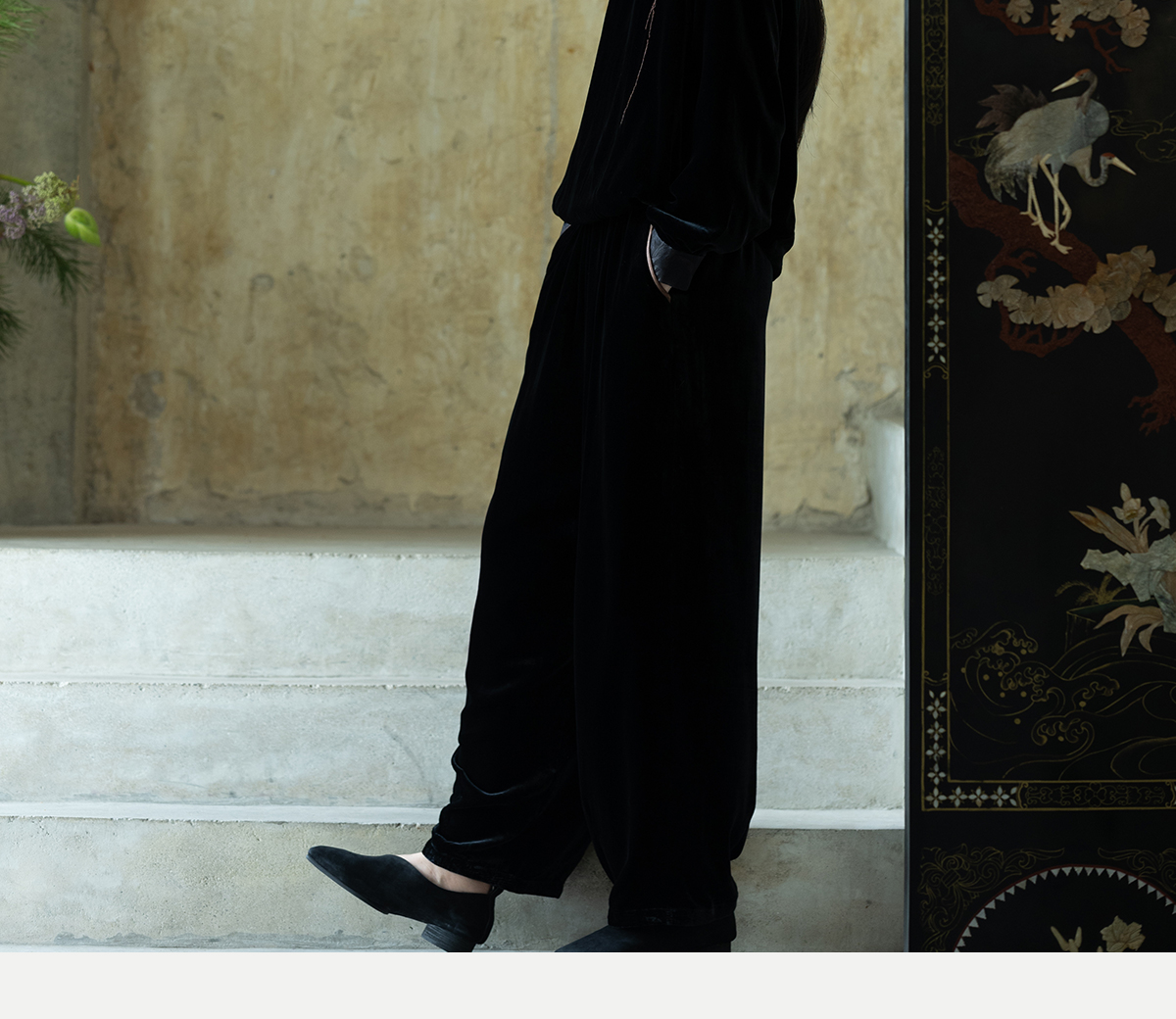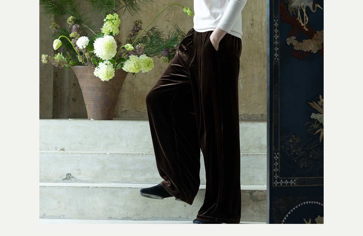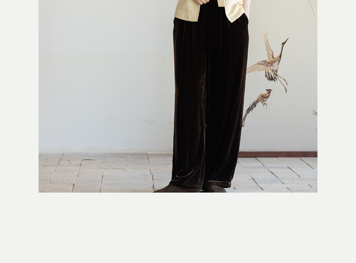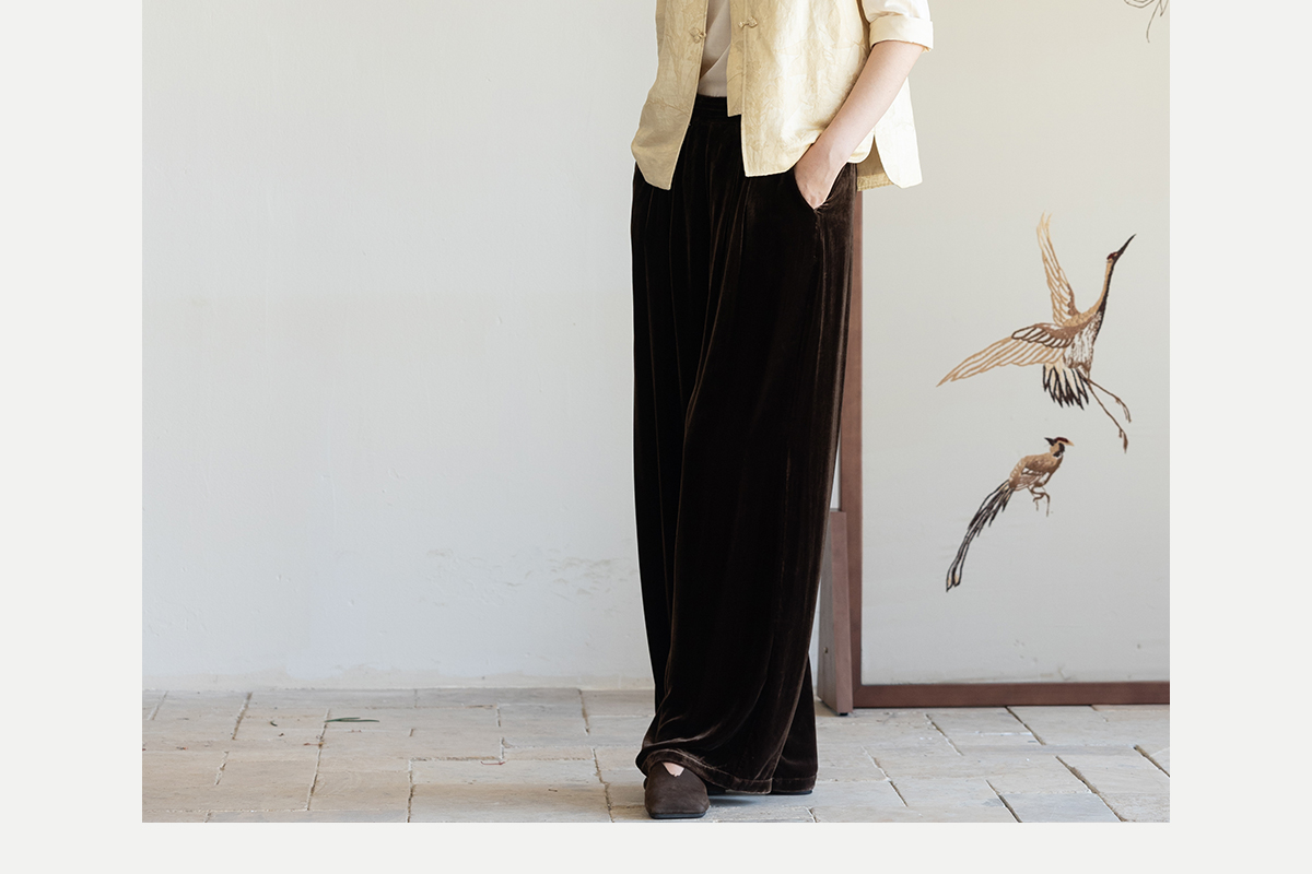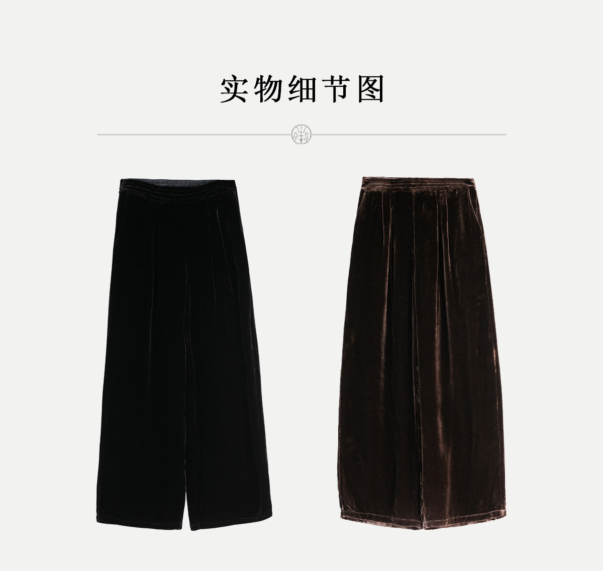 牧衣游原创 丝绒净色长裤简约显瘦宽松垂感松紧腰百搭休闲裤 未绿