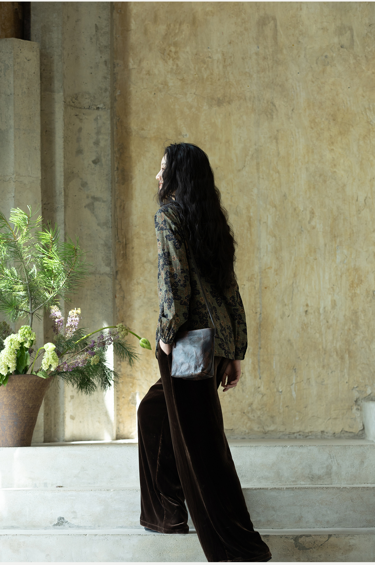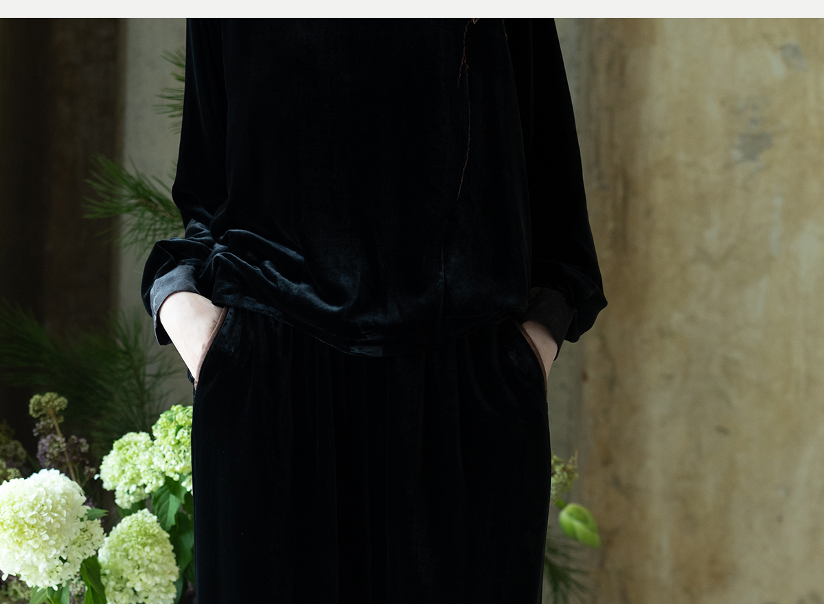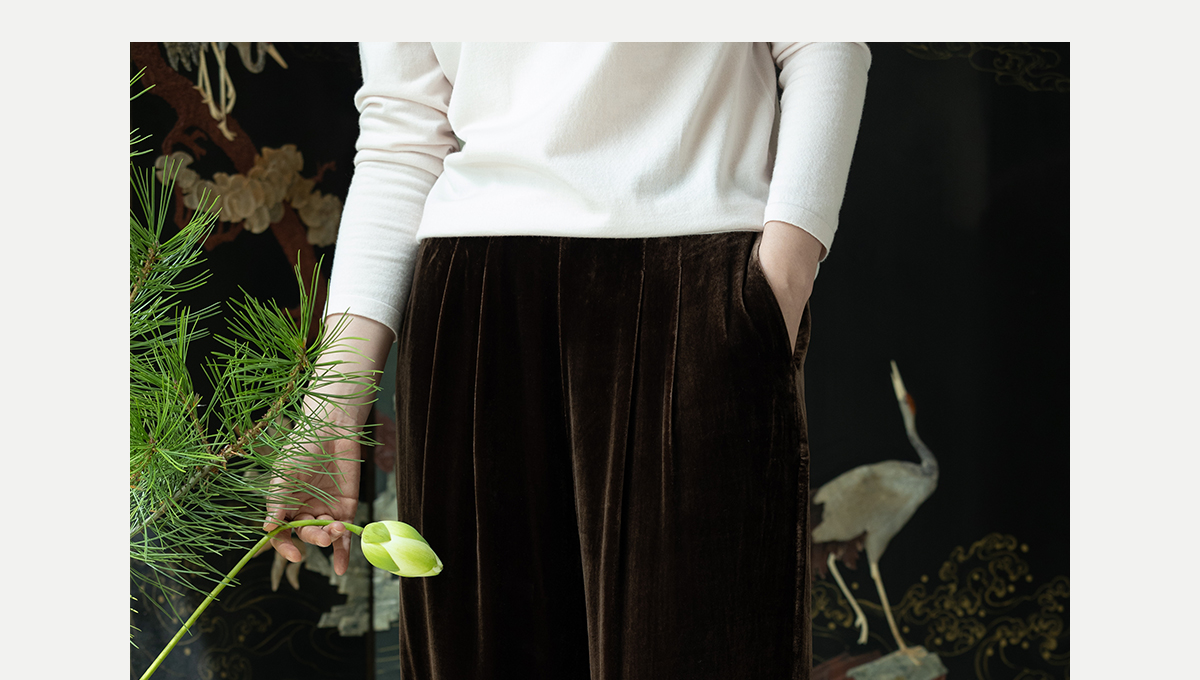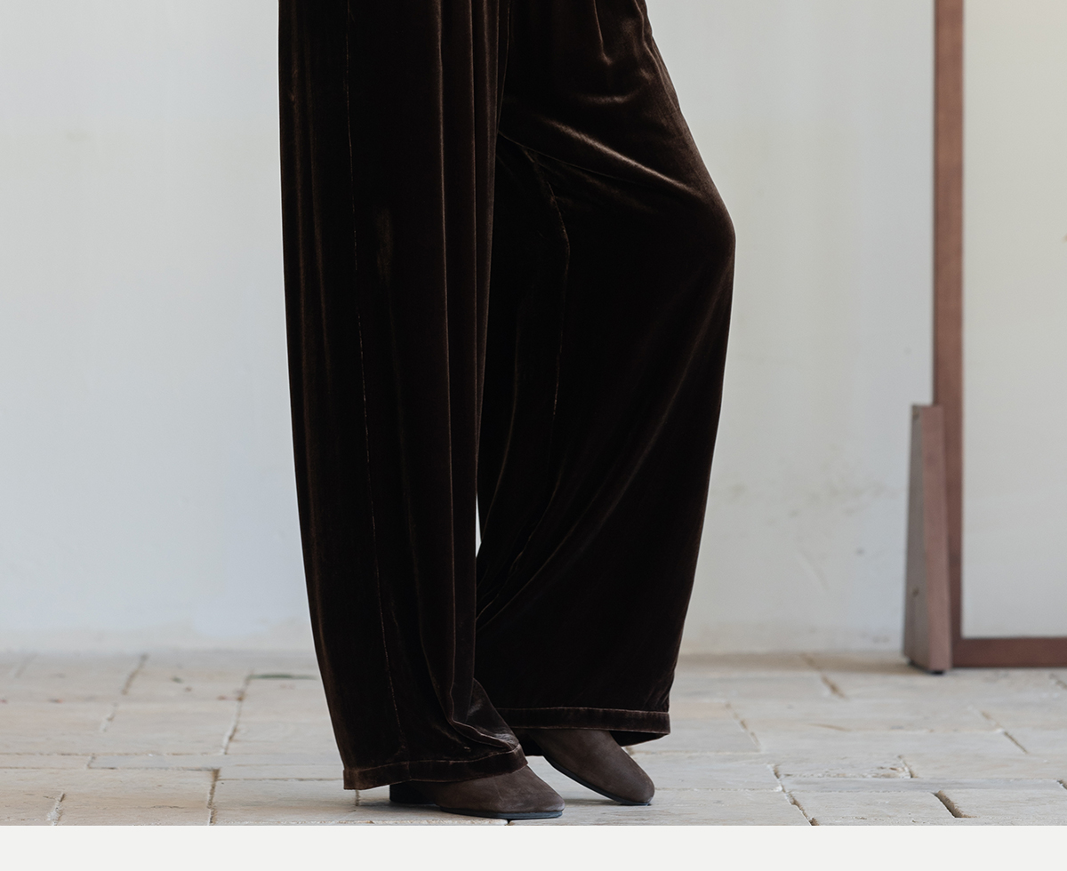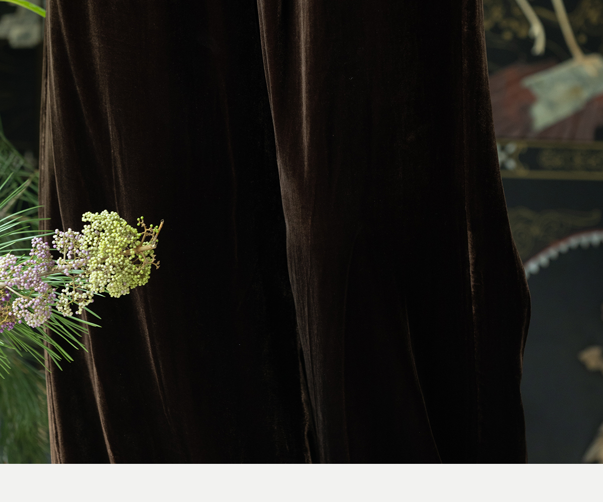 牧衣游原创 丝绒净色长裤简约显瘦宽松垂感松紧腰百搭休闲裤 未绿