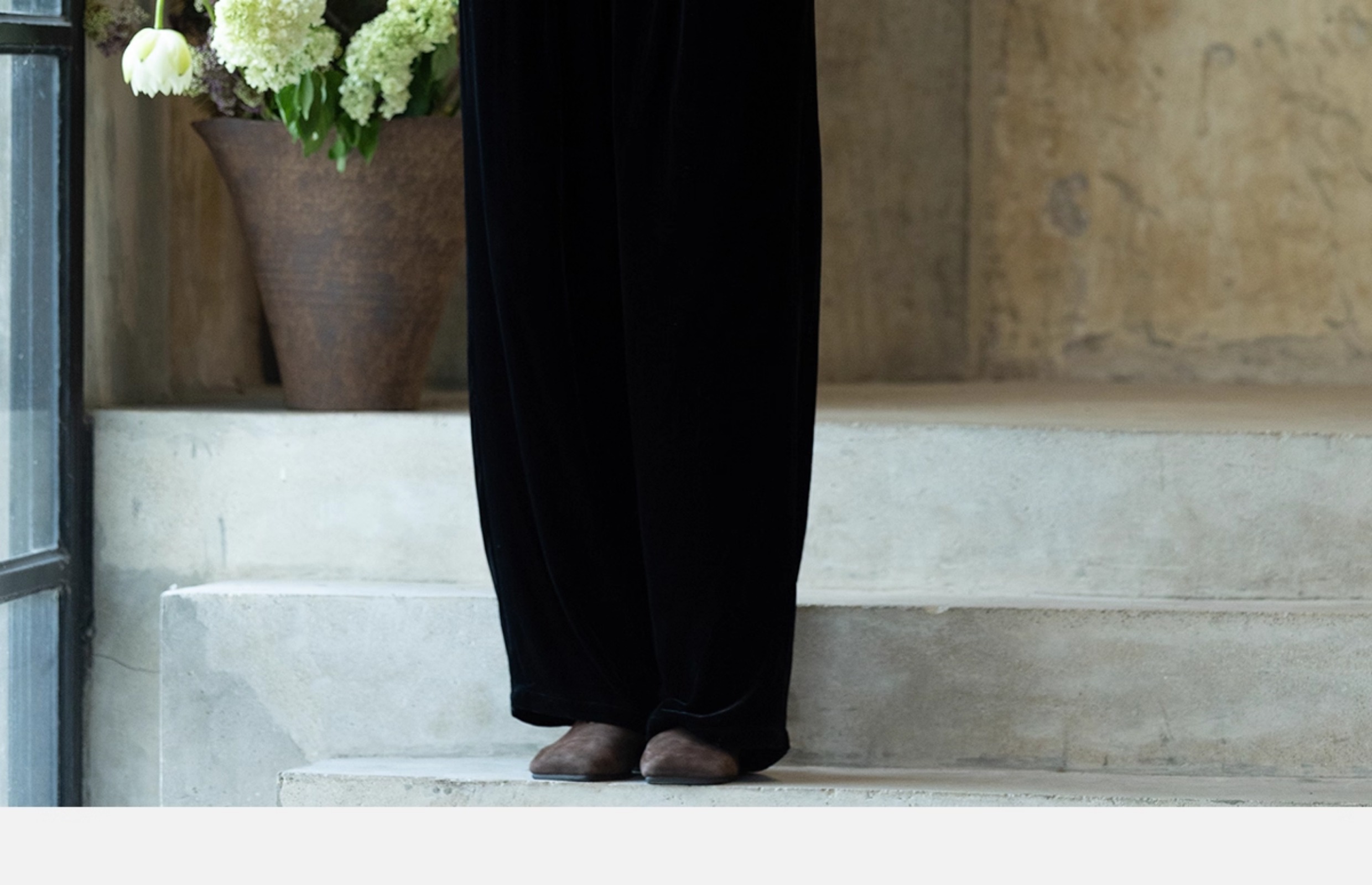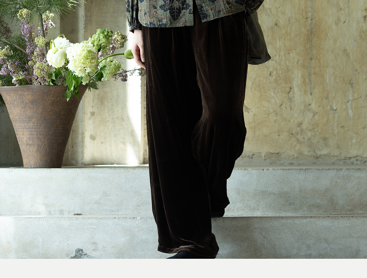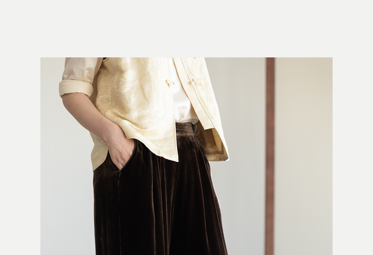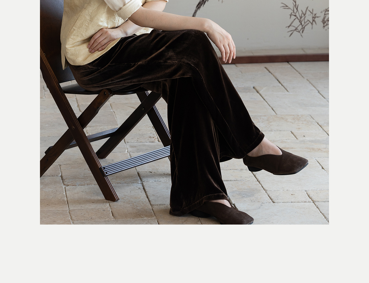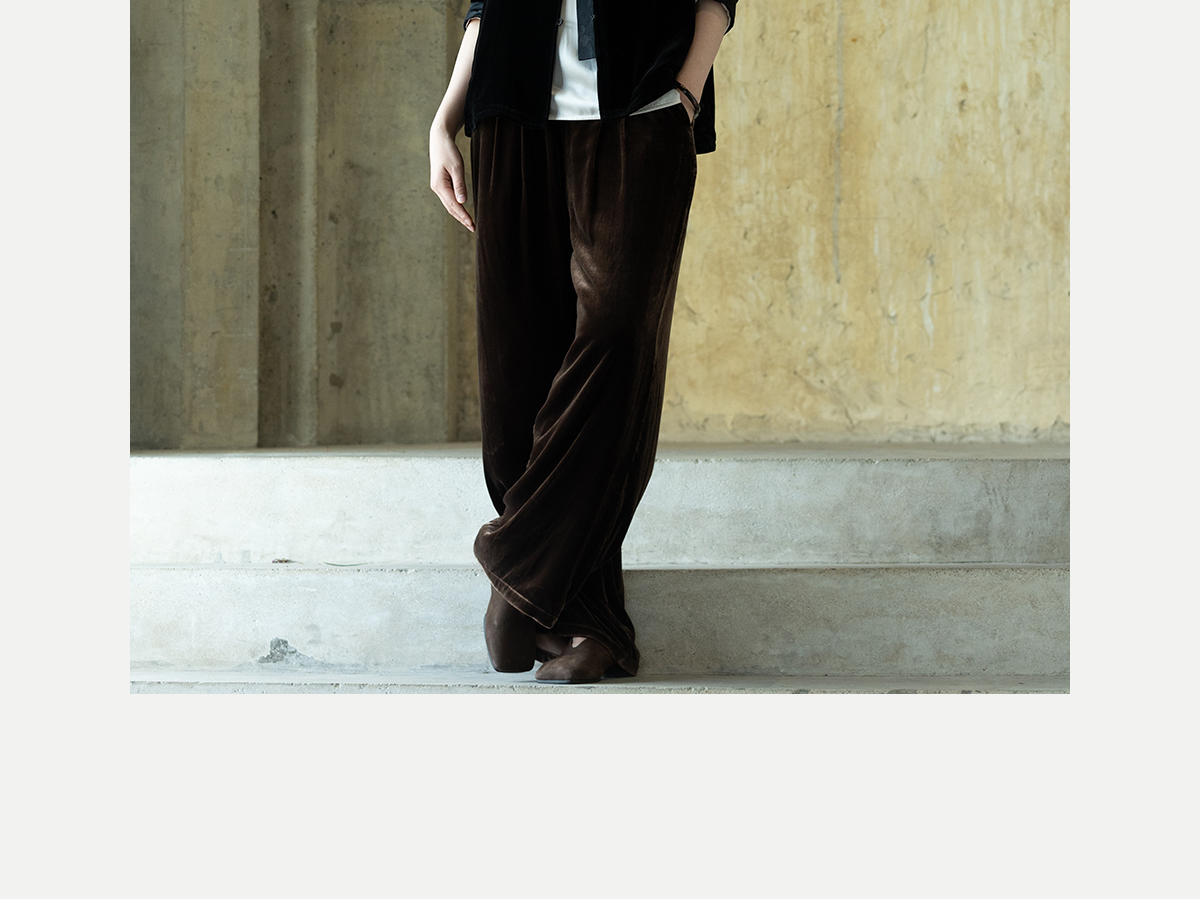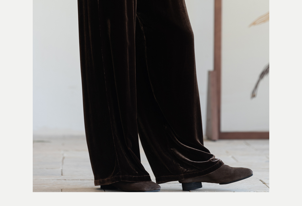 牧衣游原创 丝绒净色长裤简约显瘦宽松垂感松紧腰百搭休闲裤 未绿