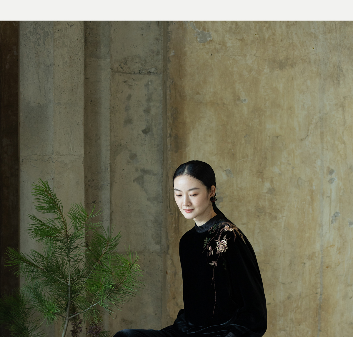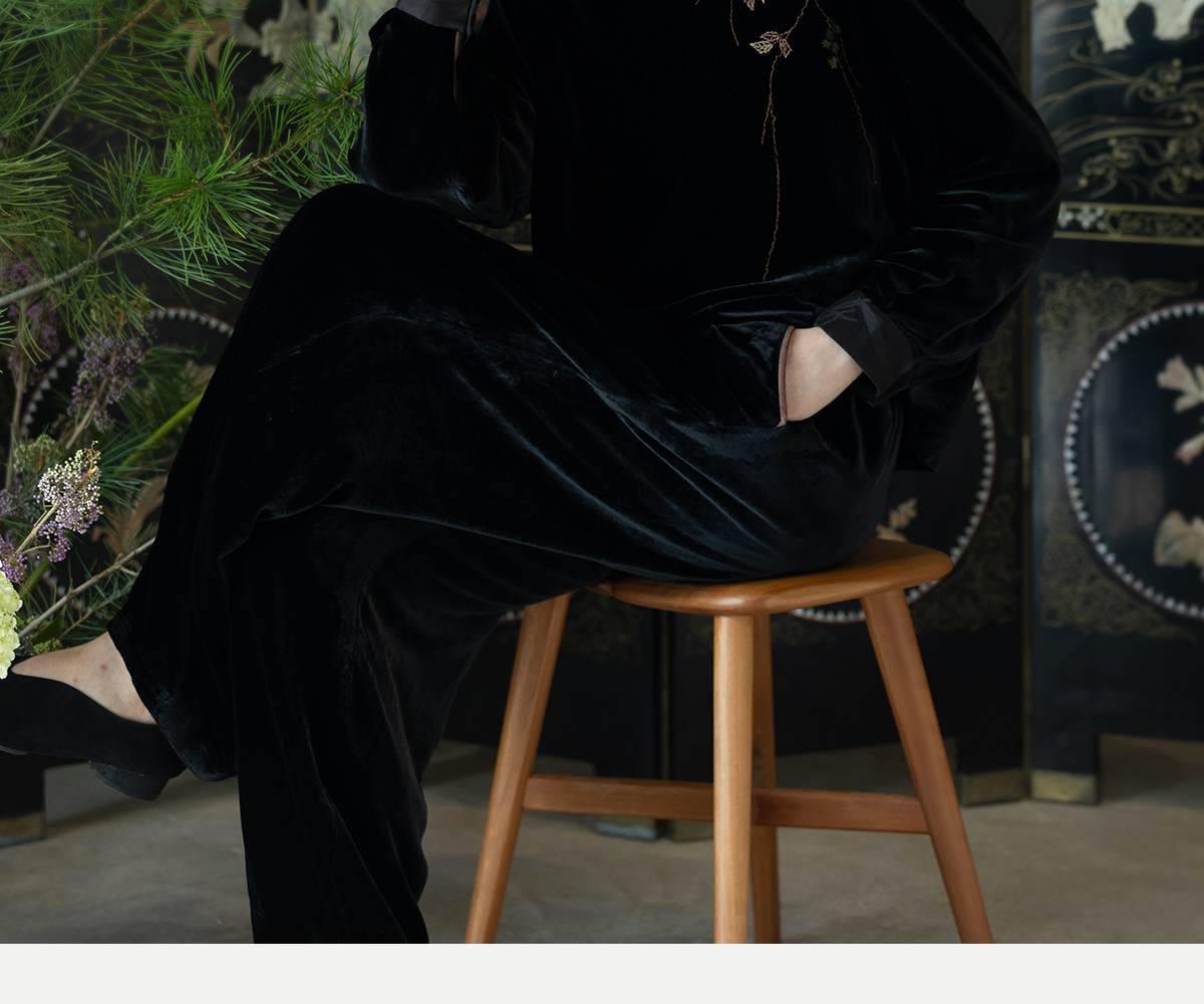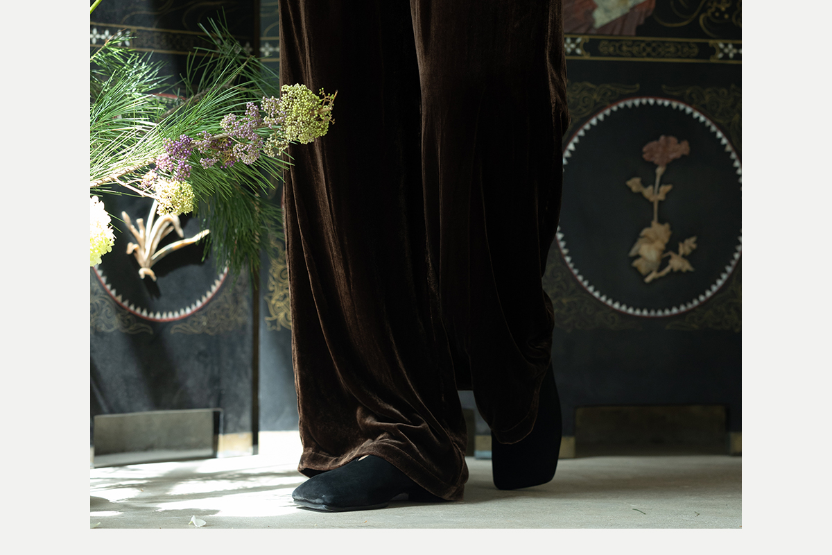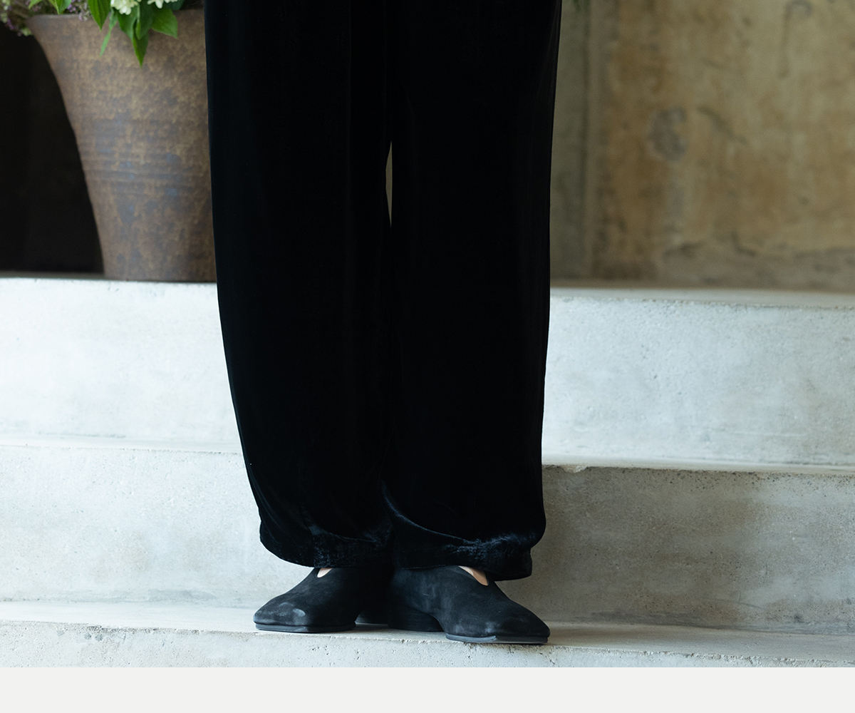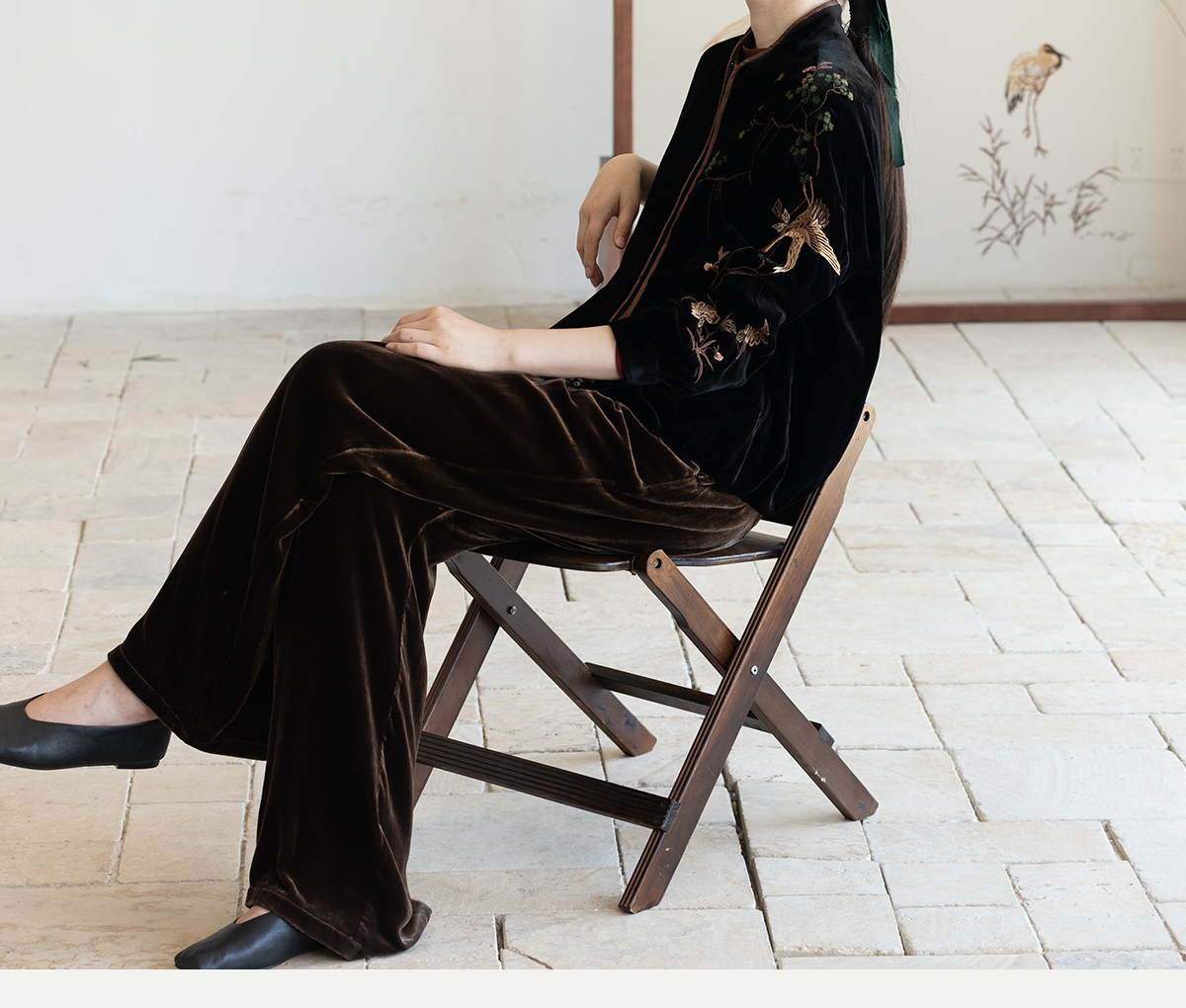 牧衣游原创 丝绒净色长裤简约显瘦宽松垂感松紧腰百搭休闲裤 未绿