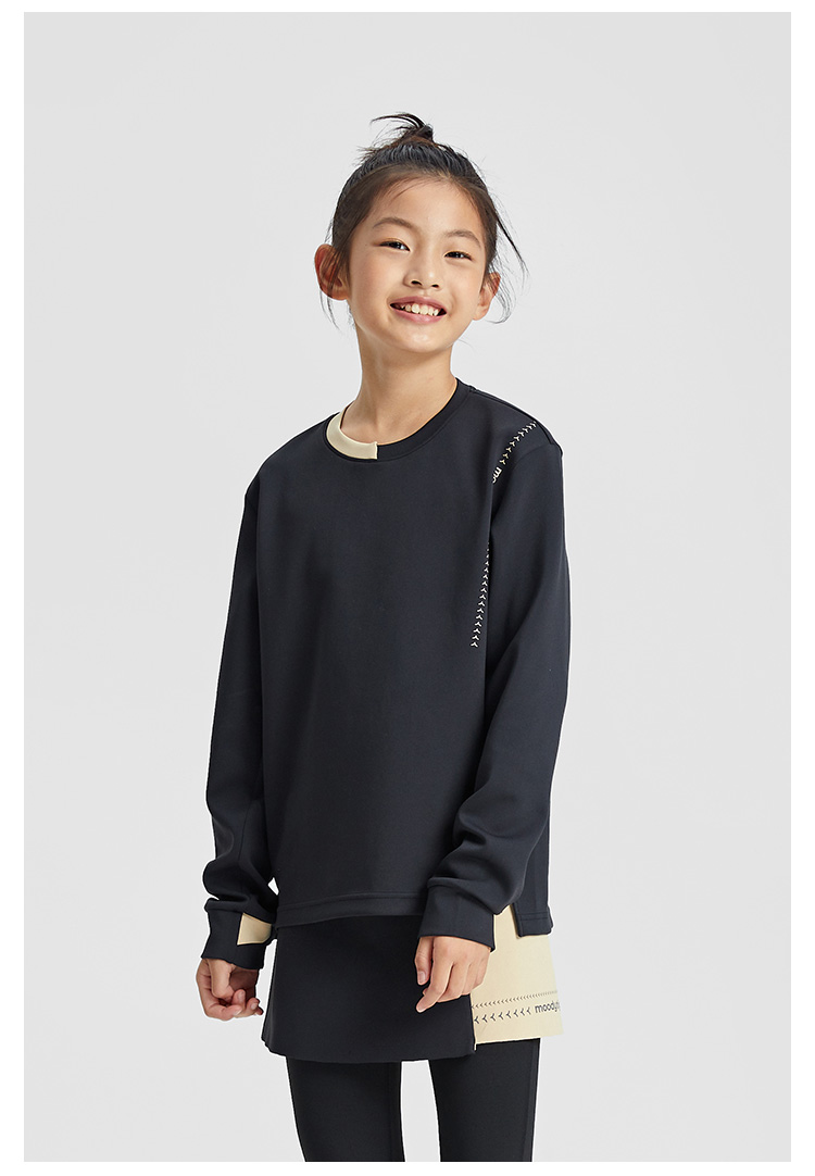 【专属】moodytiger儿童卫衣男童秋装新款空气层宽松圆领女童长袖套头衫M33110301