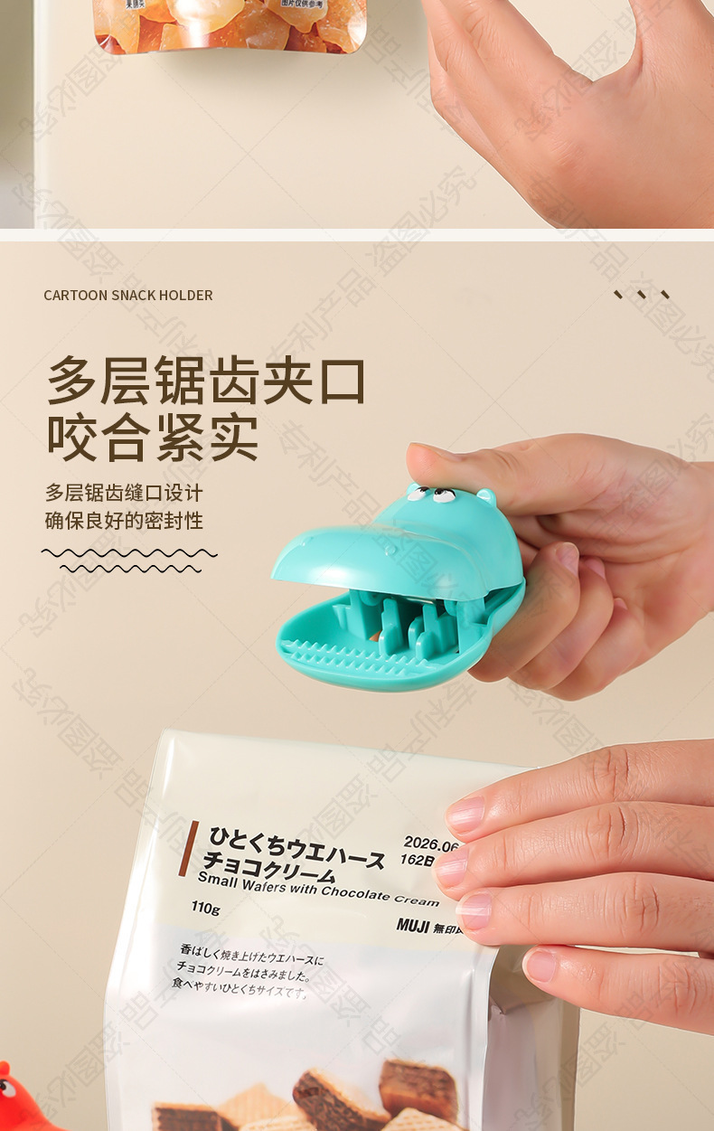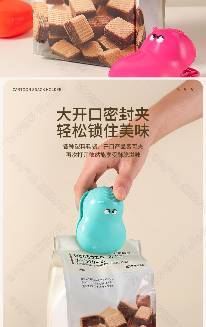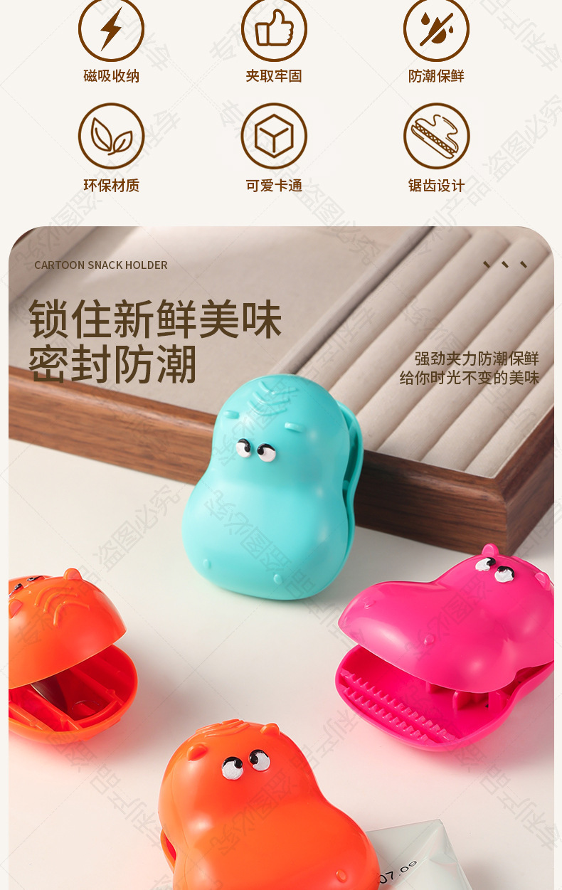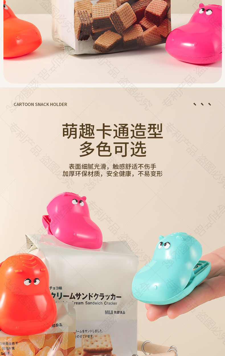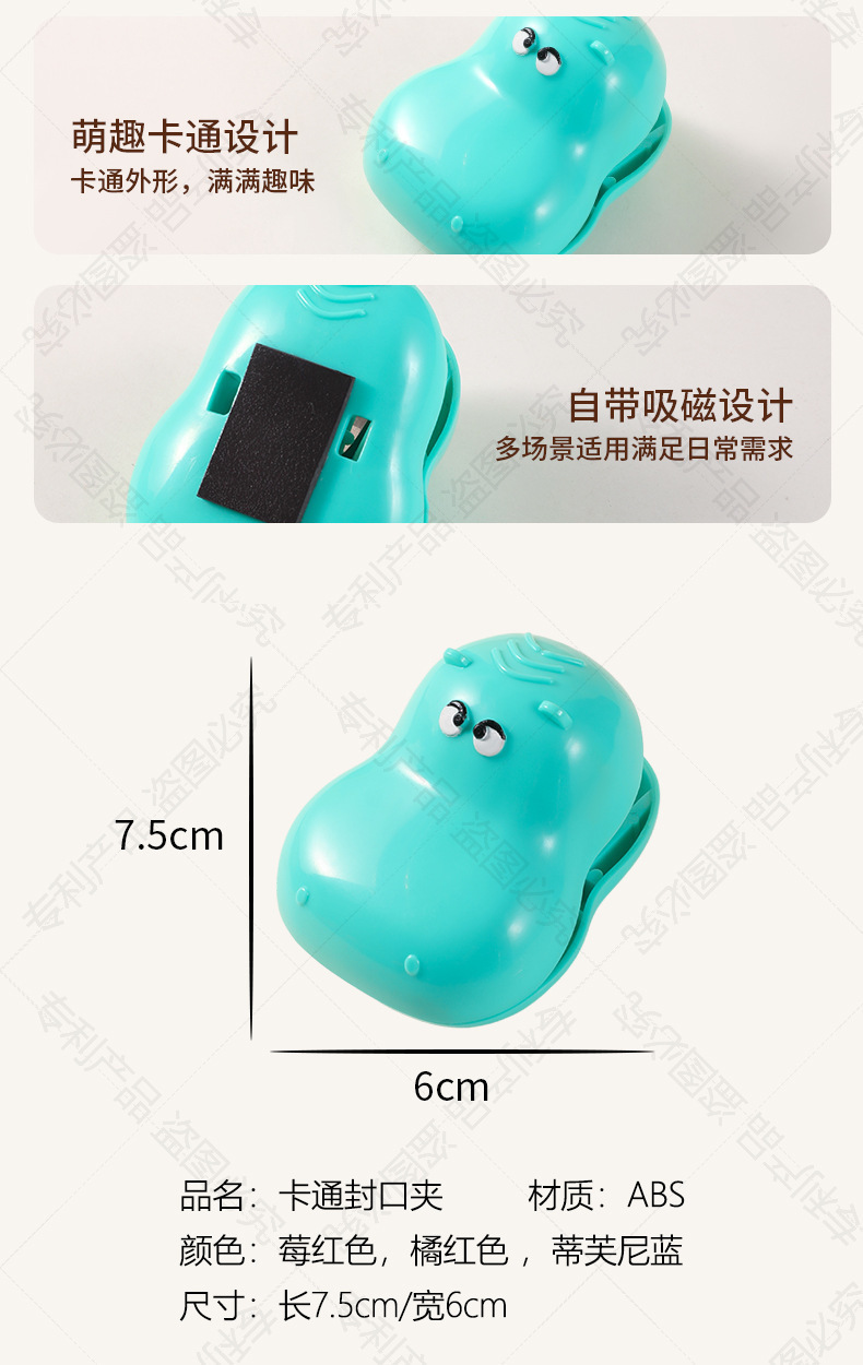 多巴胺河马磁吸封口夹家用厨房包装袋防潮保鲜密封夹冰箱贴零食 商品图2