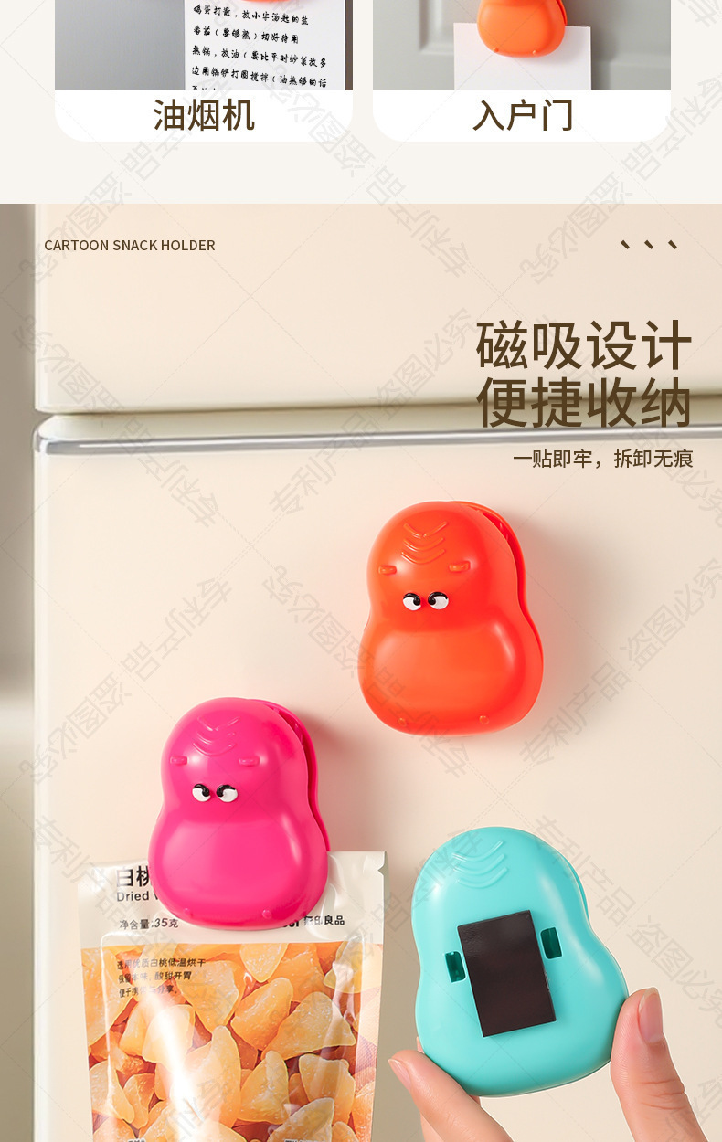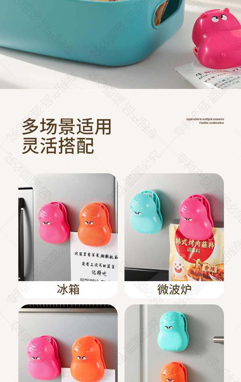 多巴胺河马磁吸封口夹家用厨房包装袋防潮保鲜密封夹冰箱贴零食 商品图7