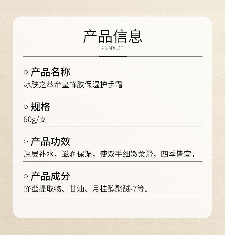 拍一发三 冰肤之萃帝皇蜂胶护手霜 香氛滋润 精华嫩肤 防干裂秋冬便携护手霜 冰肤之萃香氛水光精华露樱笋年光随身带护手霜