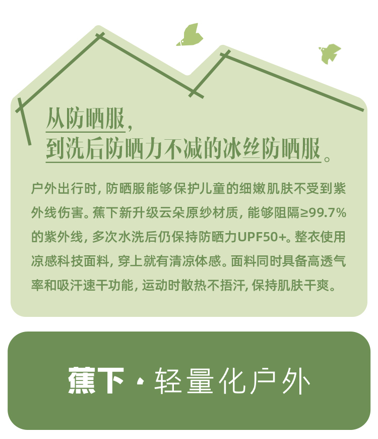 蕉下冰触系列乘荫儿童户外防晒服 儿童防晒衣外套冰丝凉感透气速干