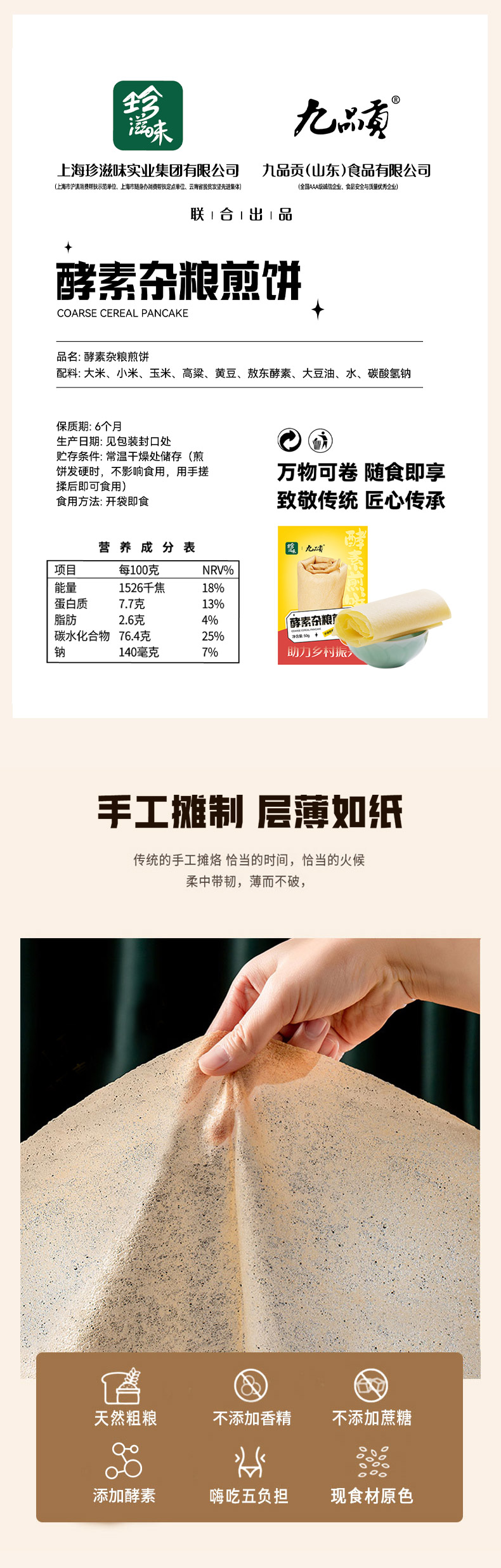 【临期】九品贡牌酵素杂粮煎饼6袋装 50g/袋*6袋