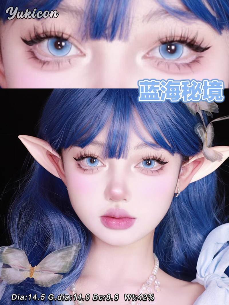 yukicon 蓝海秘境 日抛 2片 14.5mm 参考着色14.0mm 基弧8.6 含水42% 新锐国货