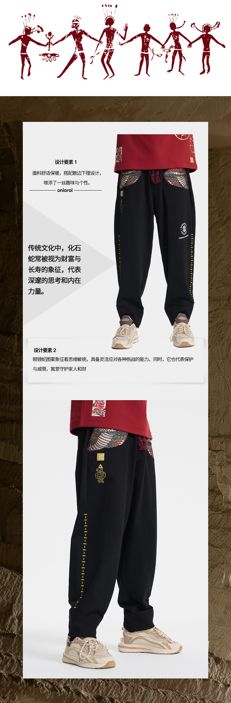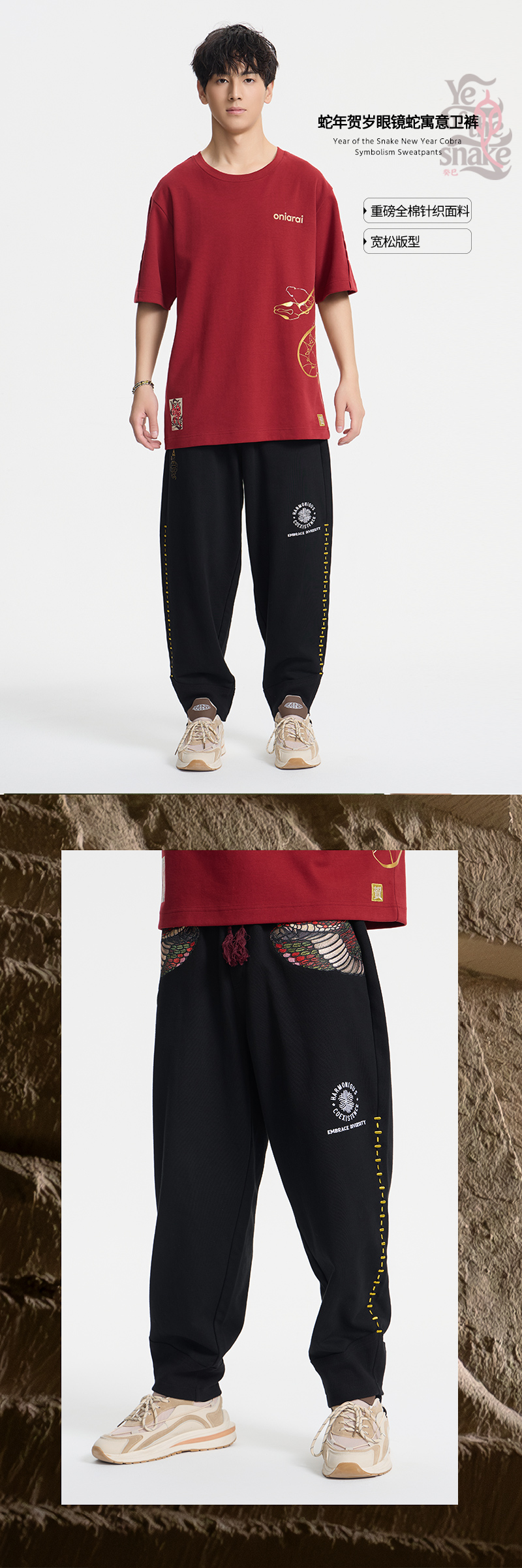 ONIARAI/鬼洗 蛇年贺岁眼镜蛇寓意卫裤 A540003