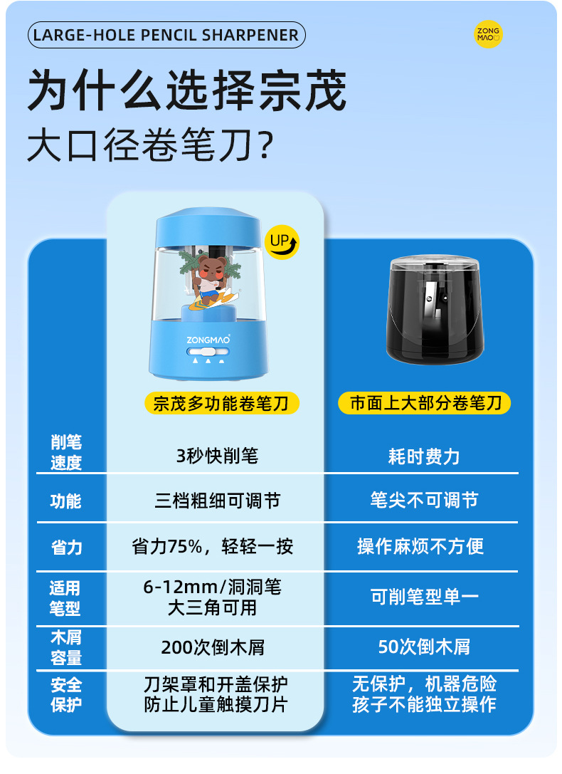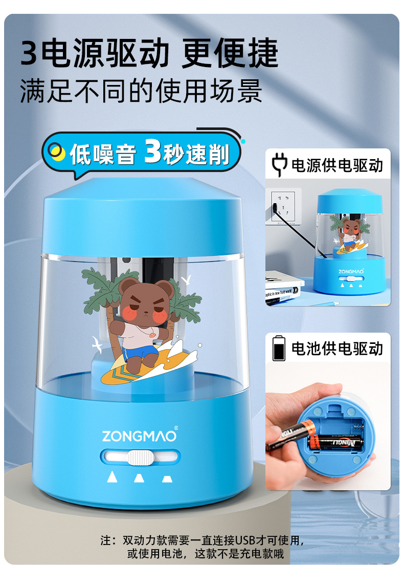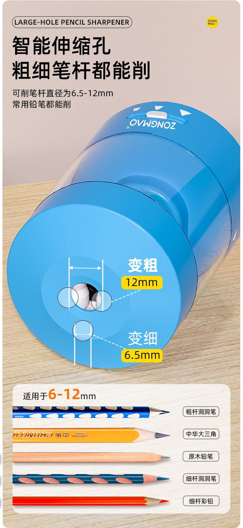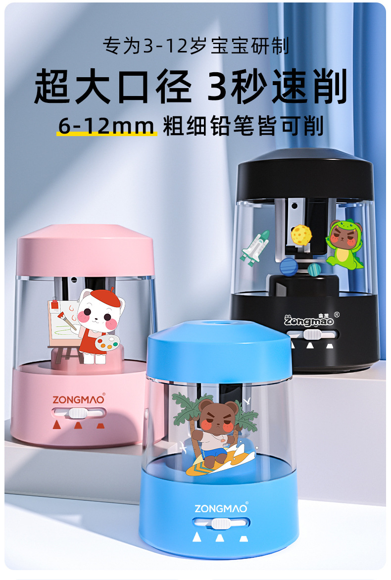 【开学豪礼8件套!【电池插电两用】宗茂电动卷笔刀,自动转换插电两用。大三角粗杆铅笔削笔刀,助你轻松解决削笔难题。开学季不压力,开学豪礼帮你减负!