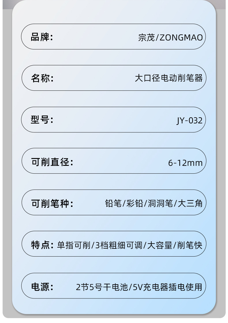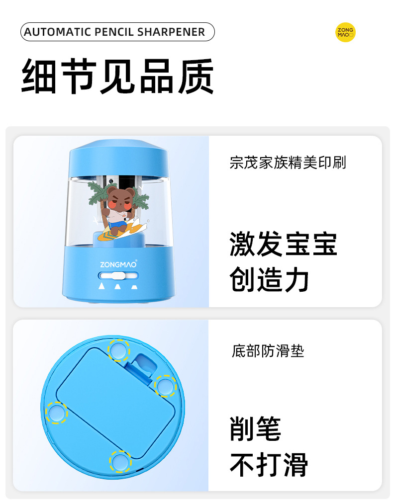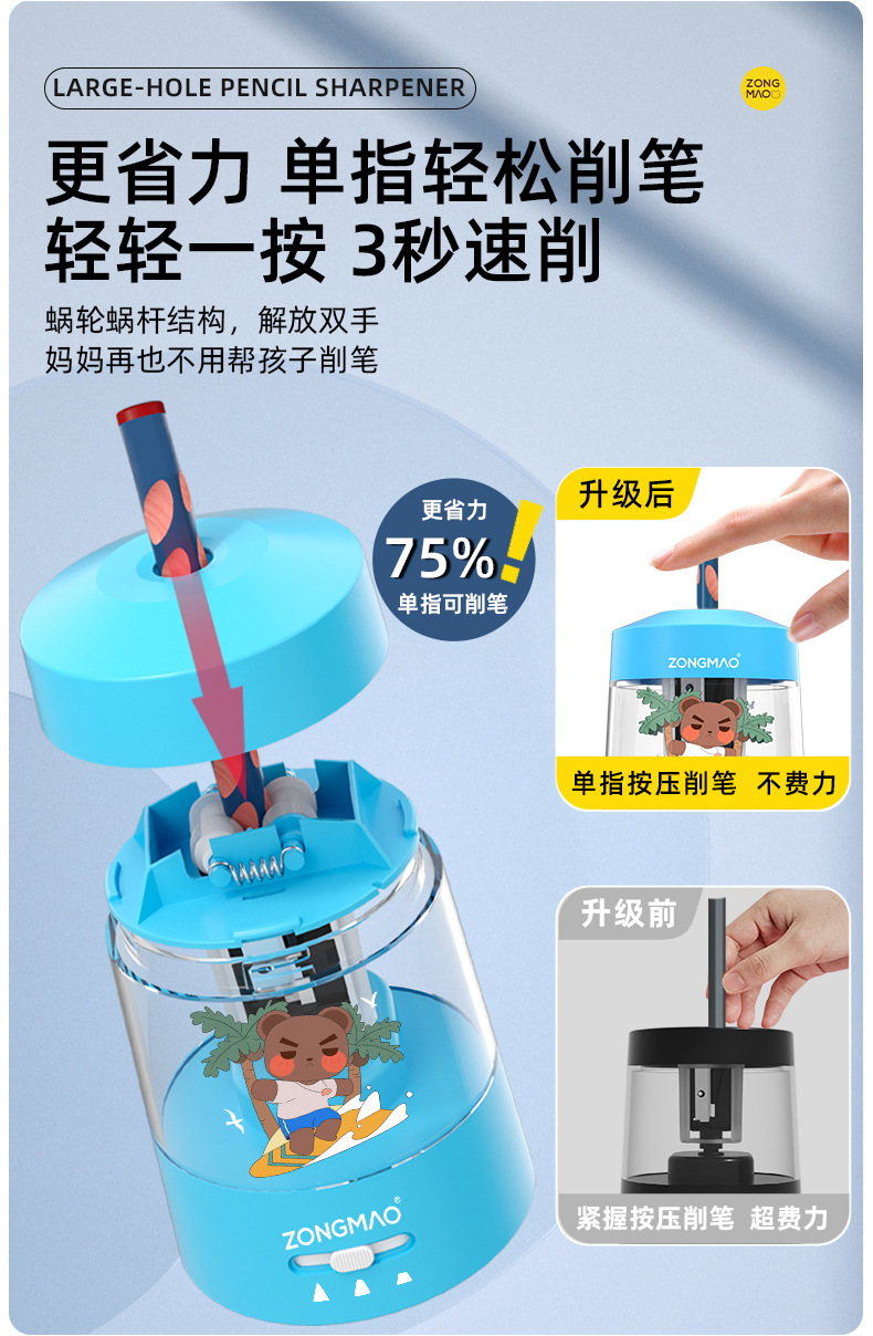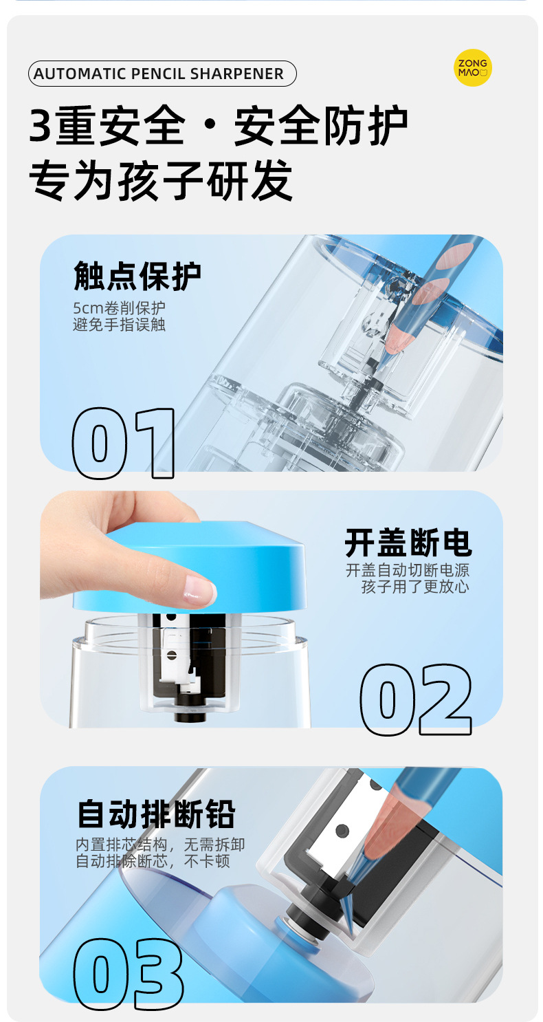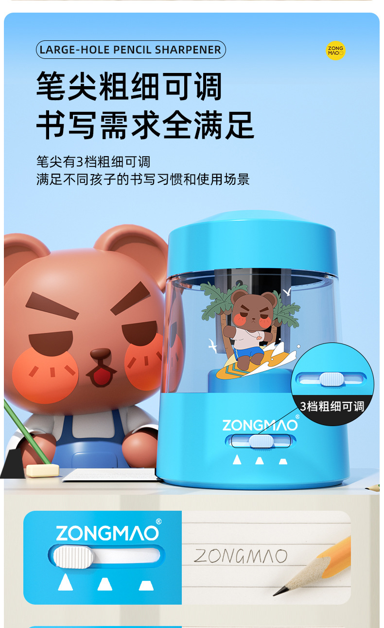 【开学豪礼8件套!【电池插电两用】宗茂电动卷笔刀,自动转换插电两用。大三角粗杆铅笔削笔刀,助你轻松解决削笔难题。开学季不压力,开学豪礼帮你减负!