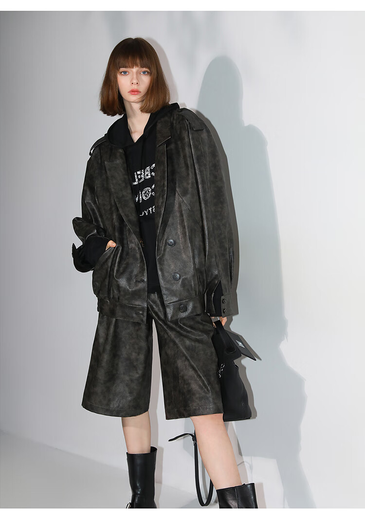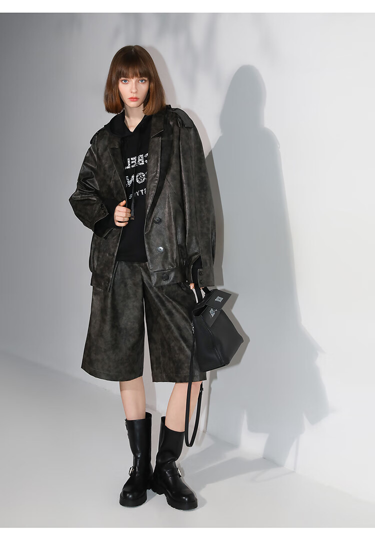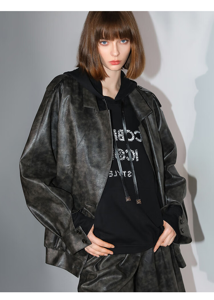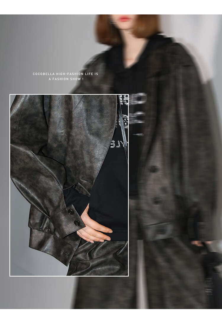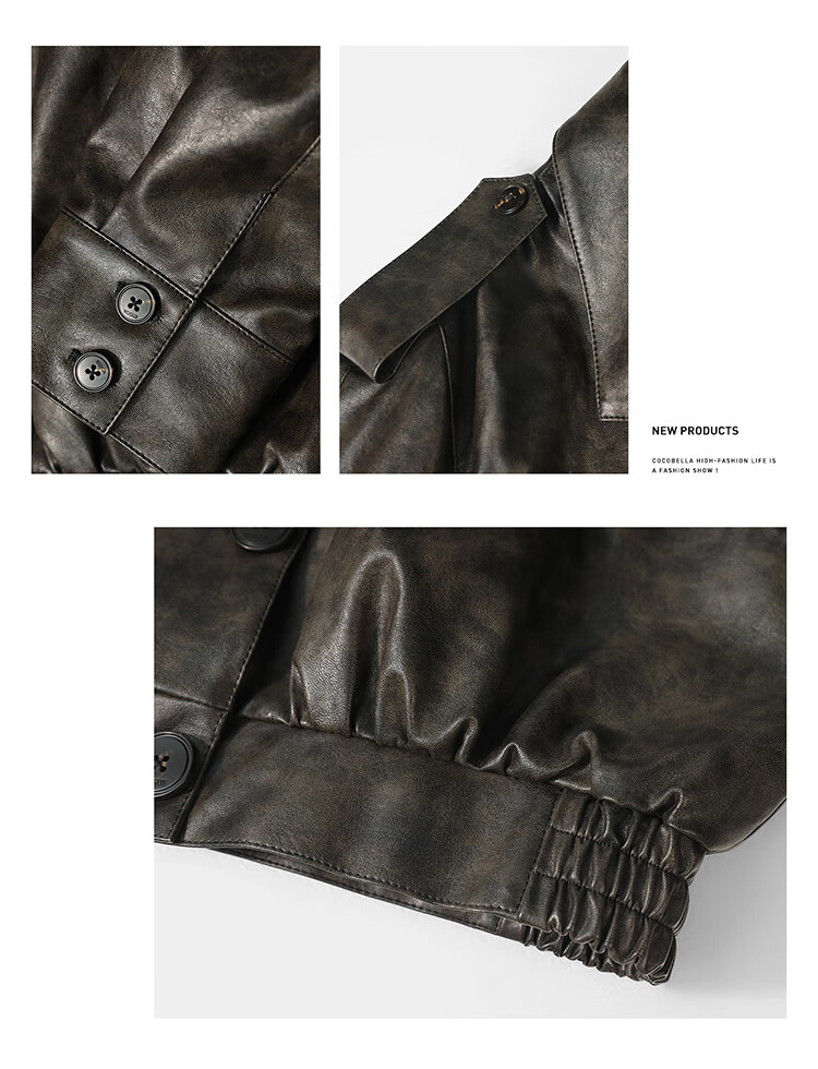 COCOBELLA手工擦色时尚PU皮衣外套女高知风棒球服夹克PU3001