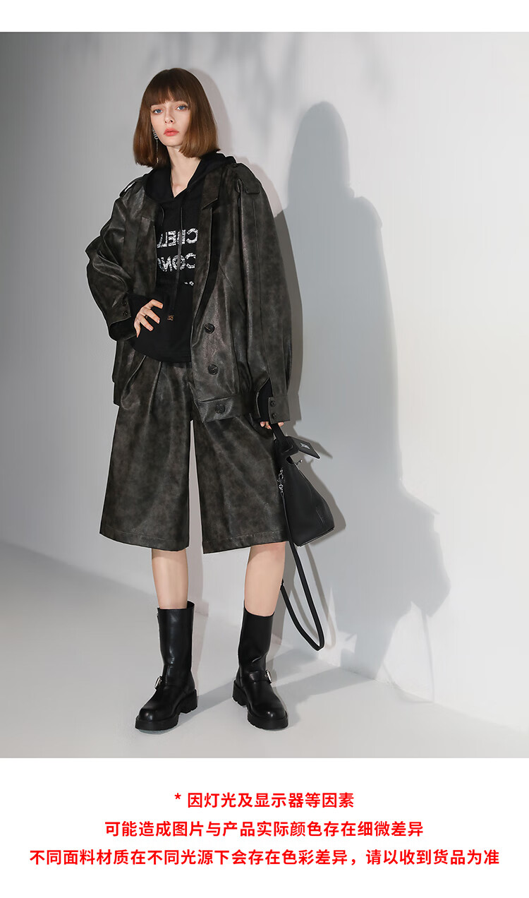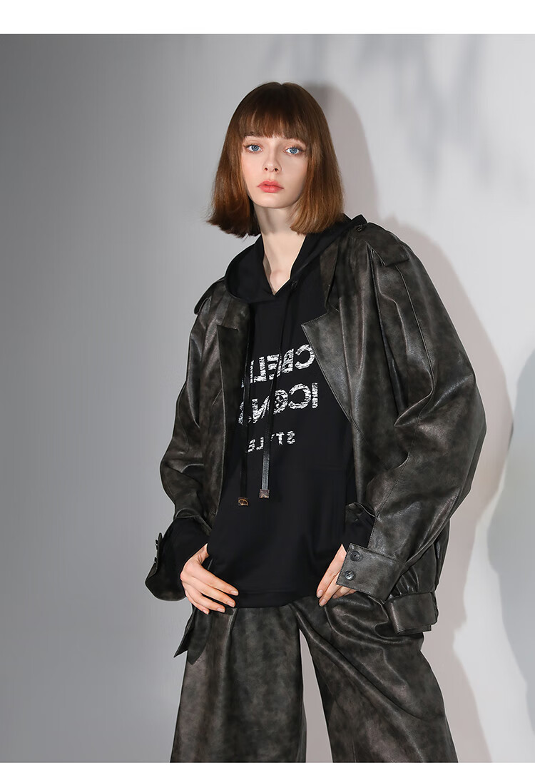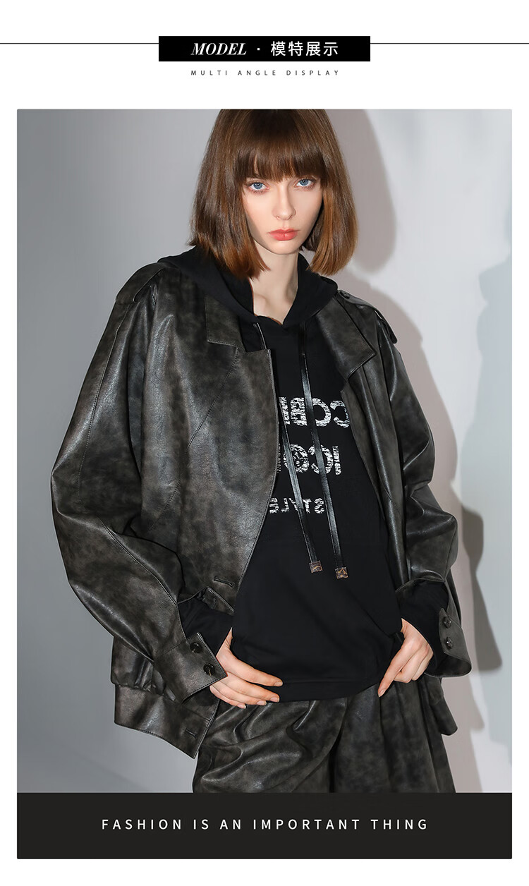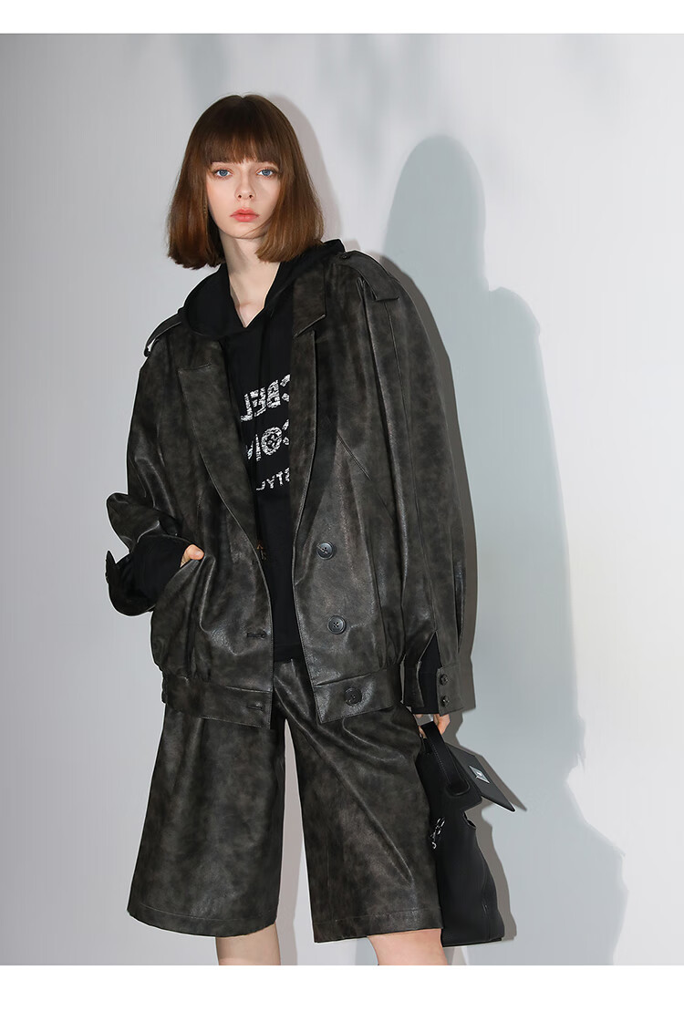 COCOBELLA手工擦色时尚PU皮衣外套女高知风棒球服夹克PU3001