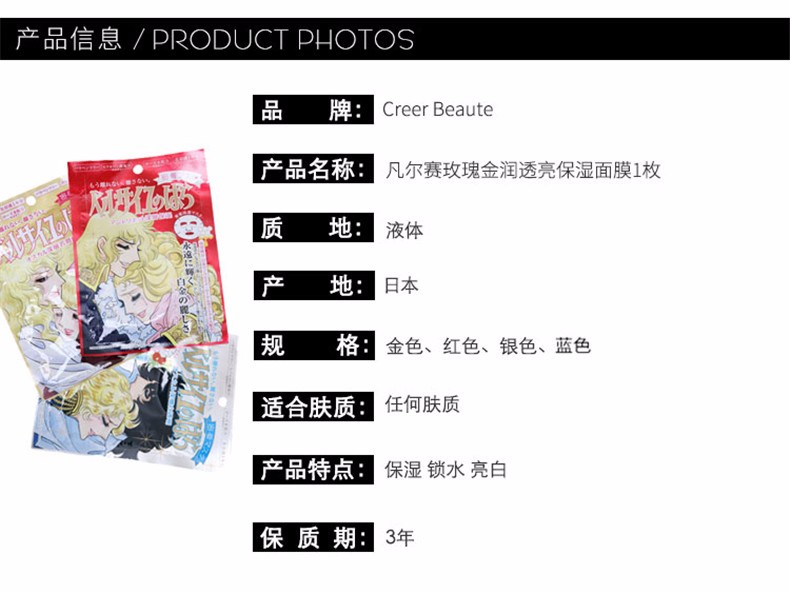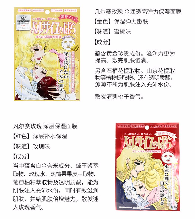 CREER BEAUTE凡尔赛 玫瑰金润透亮弹力保湿面膜 金色 27ML*2片 日本