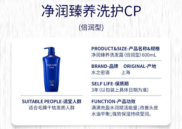 【自营】 资生堂 水之密语净润臻养洗发露 600ml