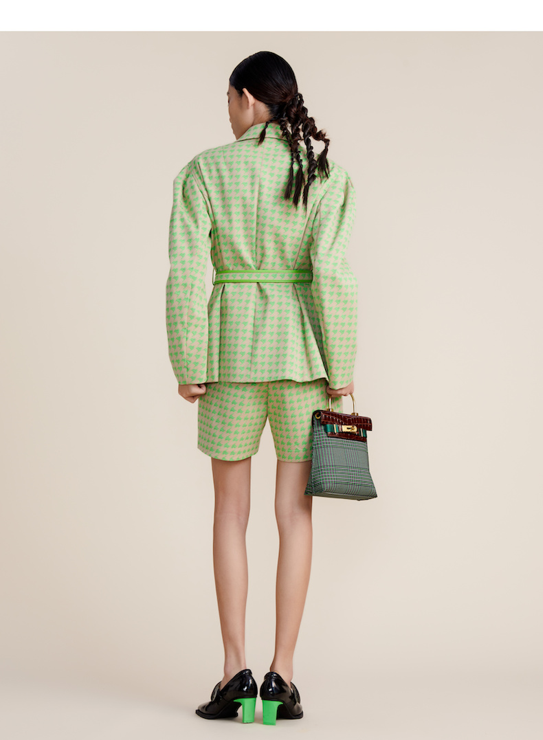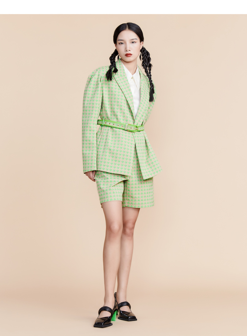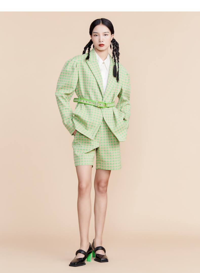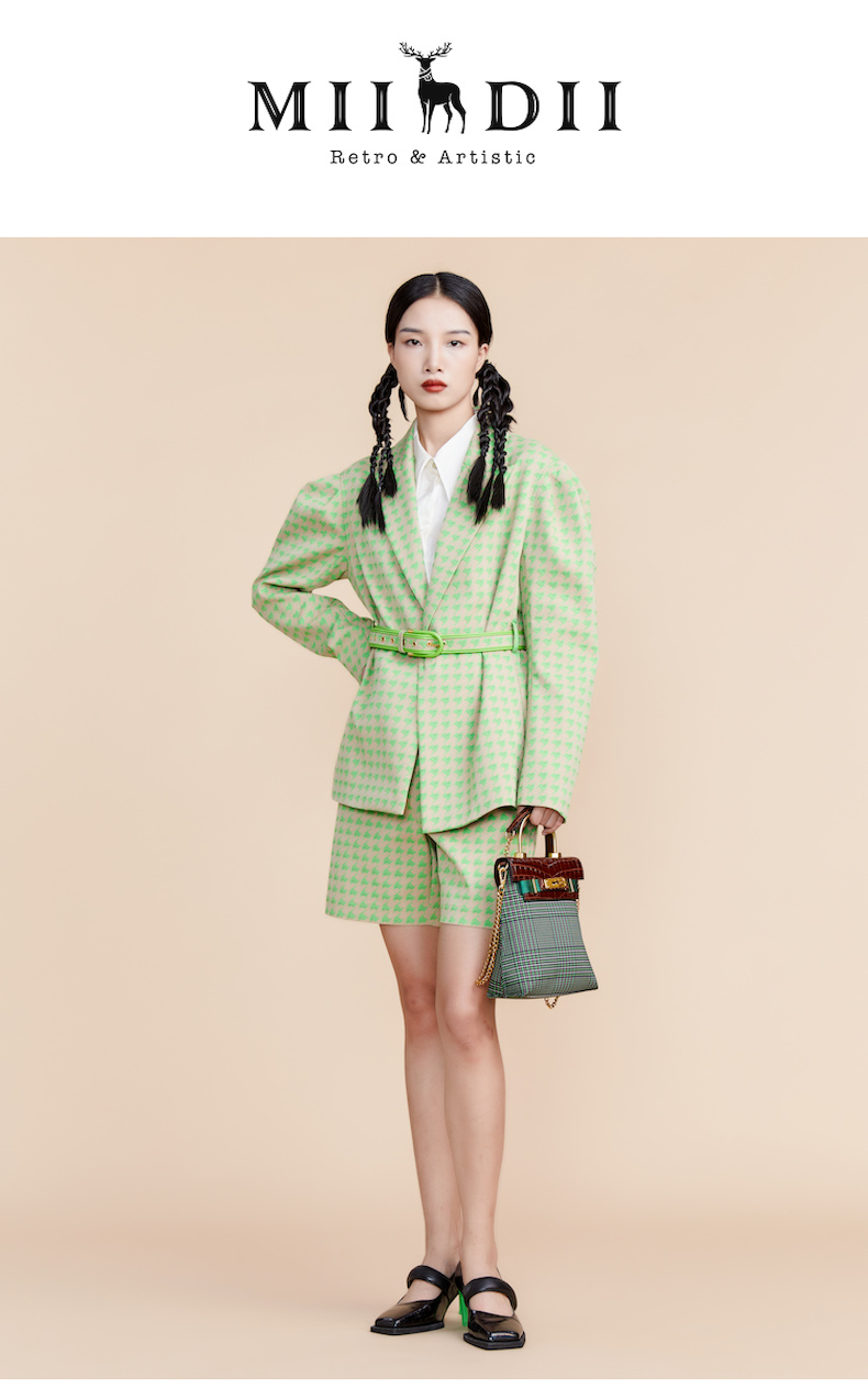 MIIDII谜底2022春新款摩登时尚千鸟格休闲短裤四分裤女221MK0062