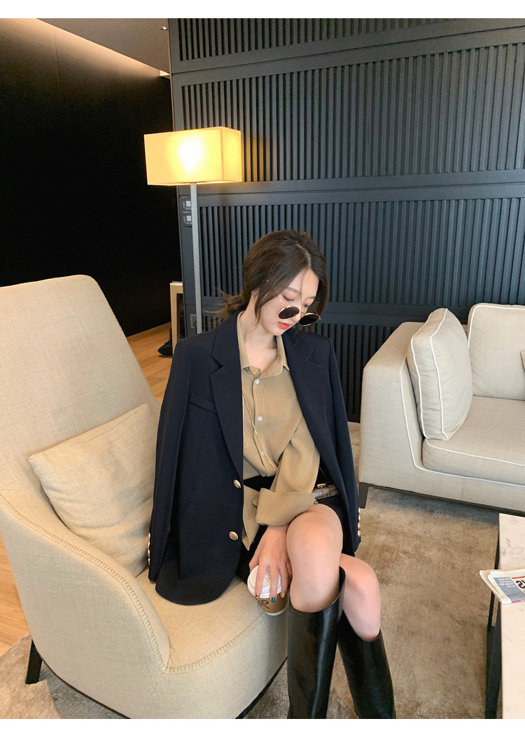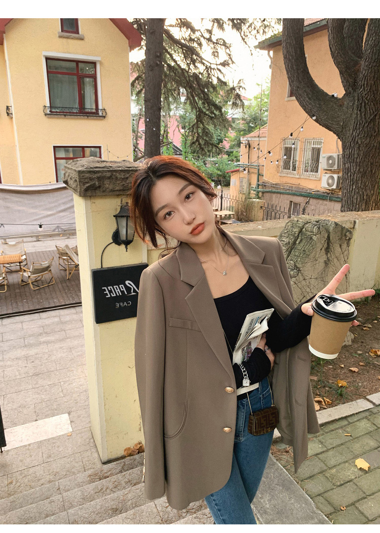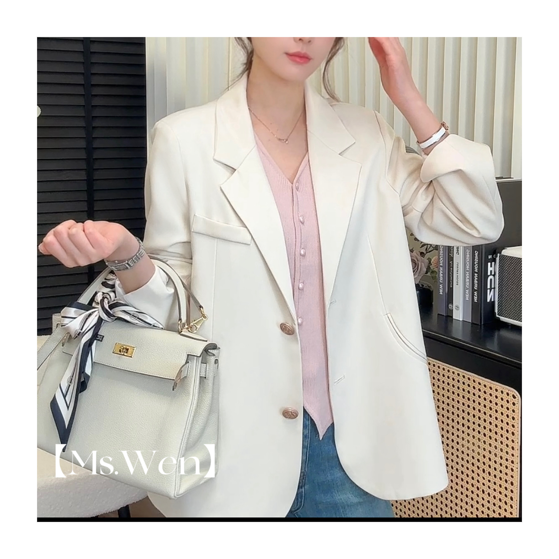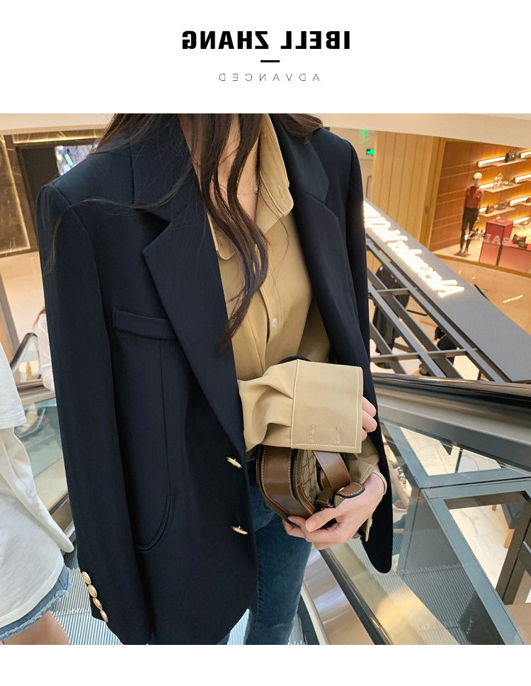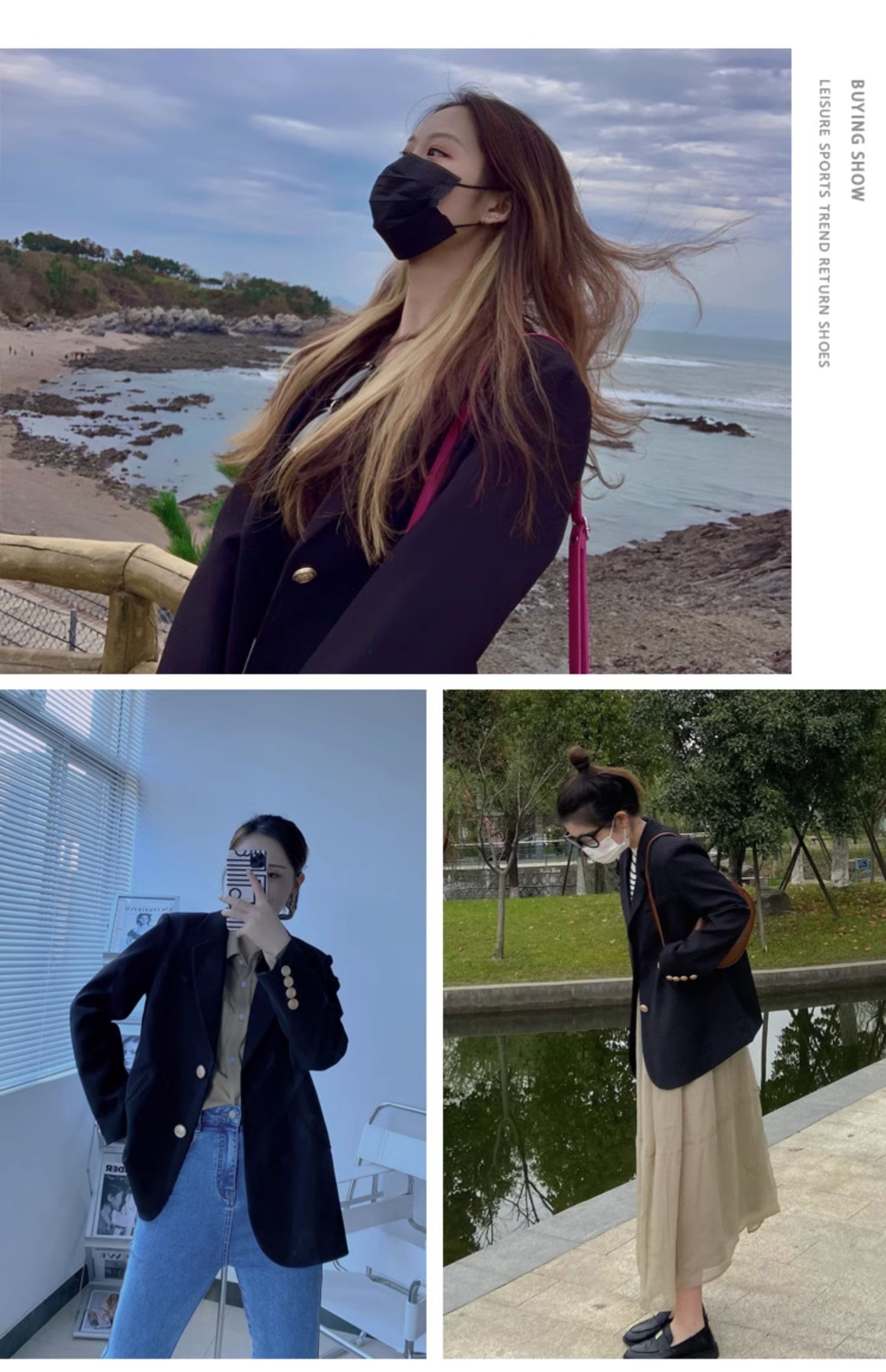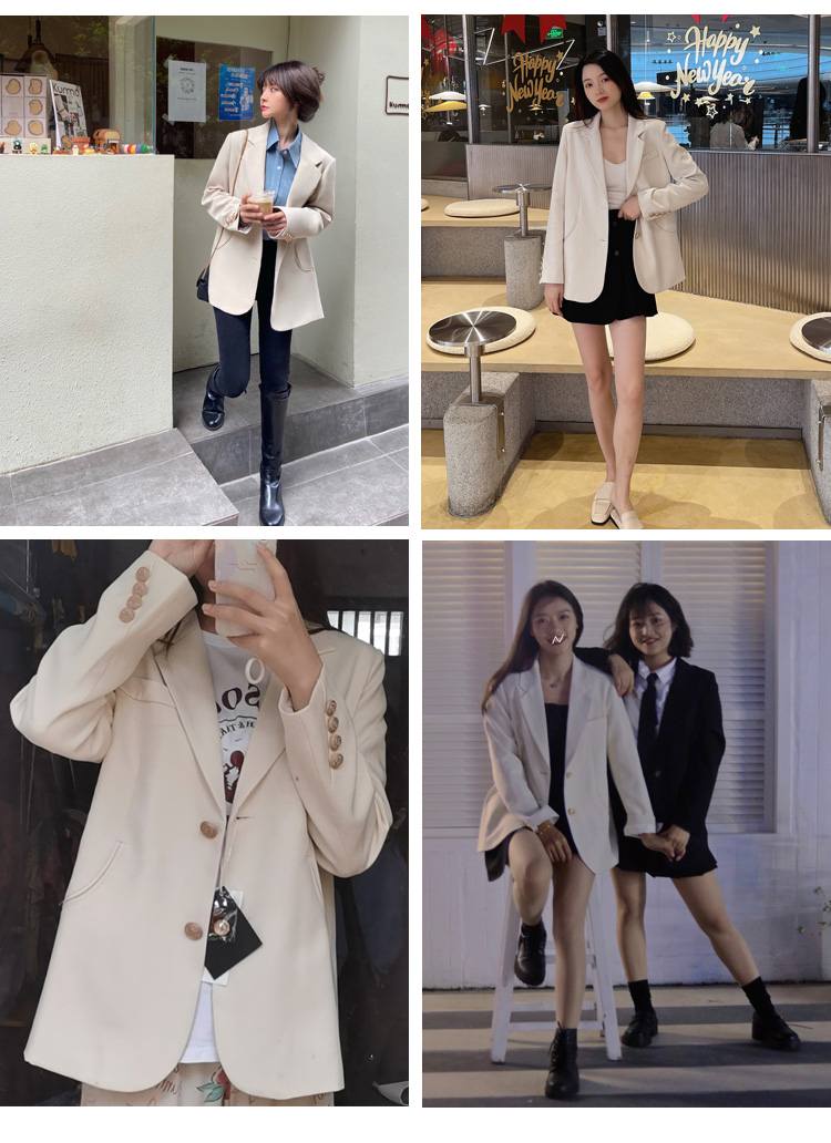 【韩版 小众设计感 西装外套】春秋款 棉质混纺面料 手感光滑有质感 上身骨感十足 经典西装版型 手工定制铜扣 不褪色