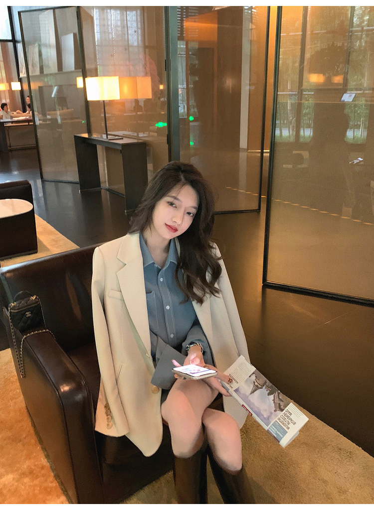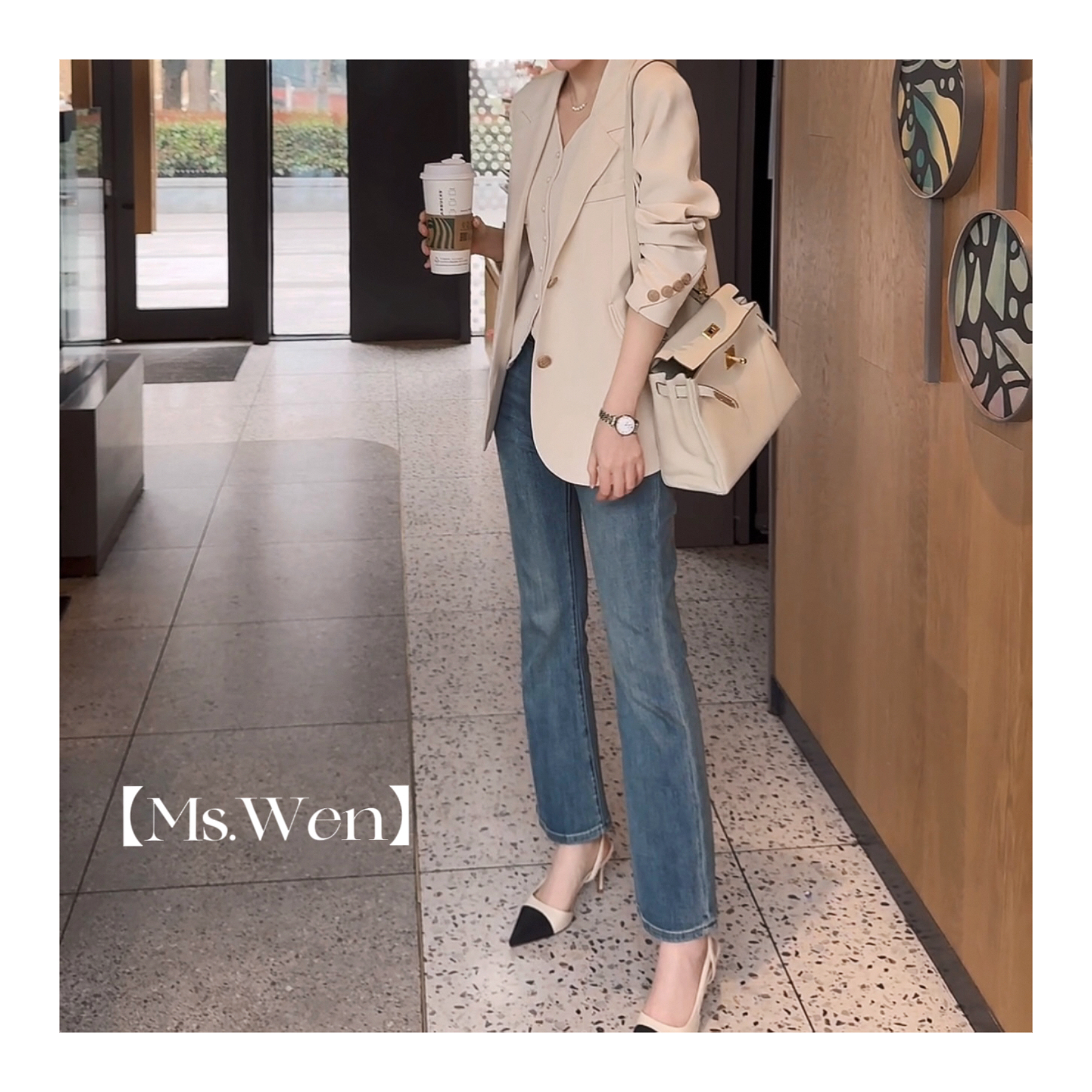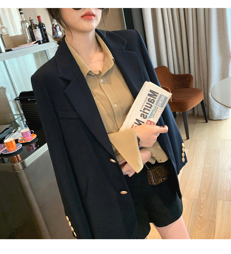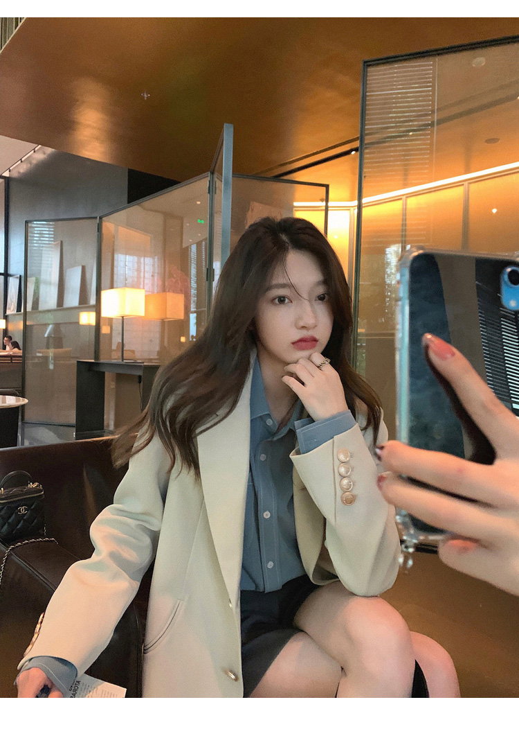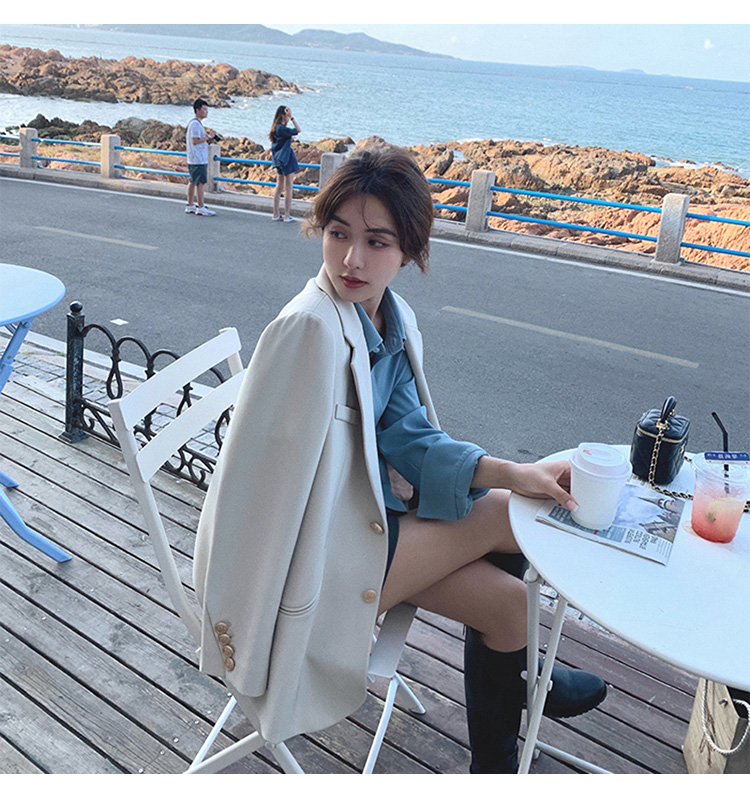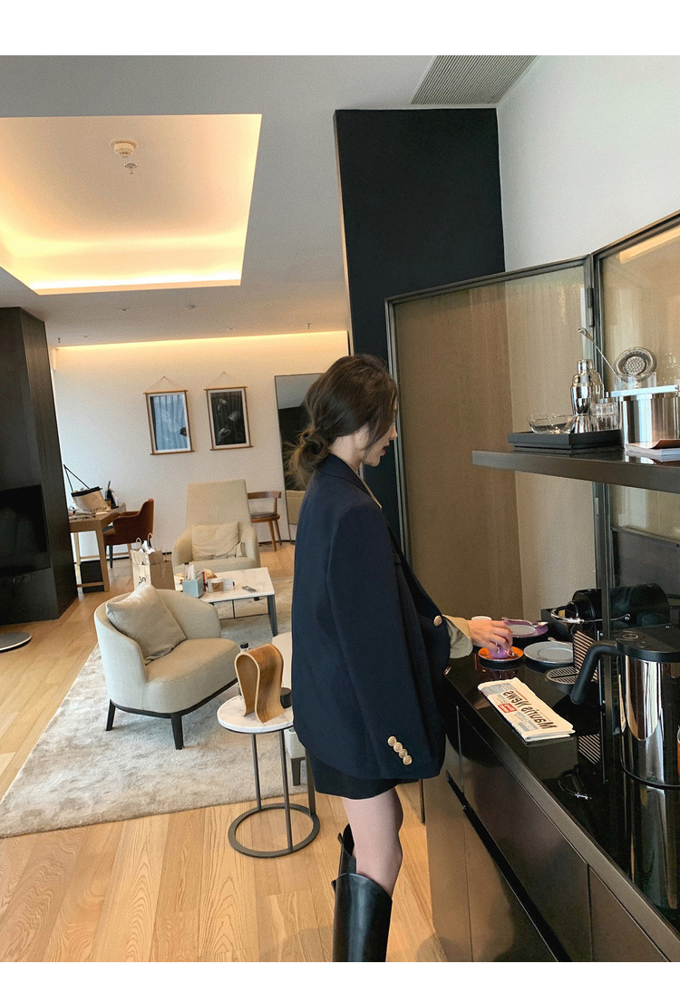 【韩版 小众设计感 西装外套】春秋款 棉质混纺面料 手感光滑有质感 上身骨感十足 经典西装版型 手工定制铜扣 不褪色