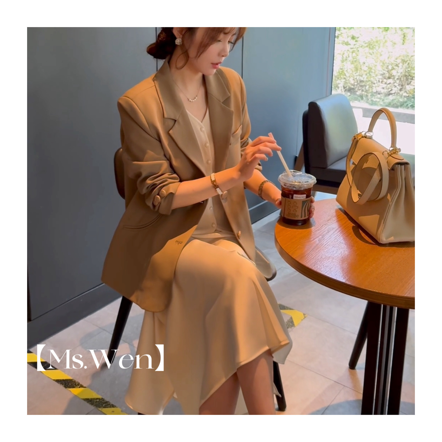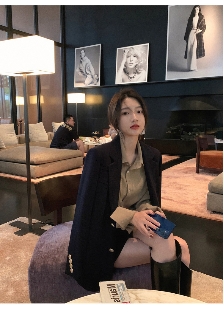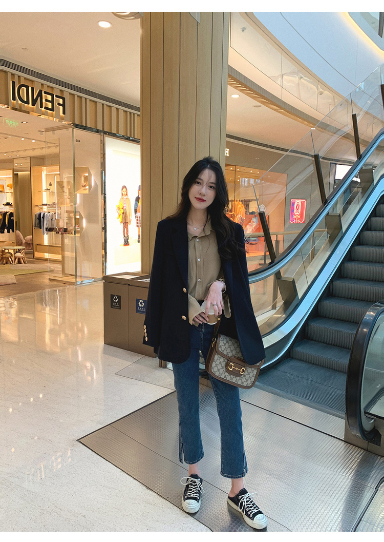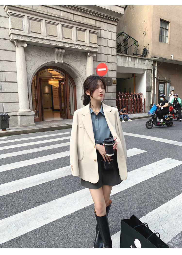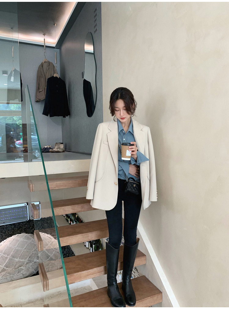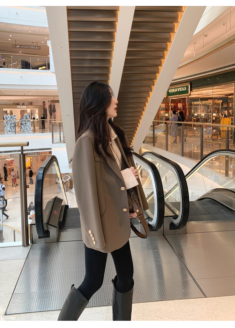 【韩版 小众设计感 西装外套】春秋款 棉质混纺面料 手感光滑有质感 上身骨感十足 经典西装版型 手工定制铜扣 不褪色