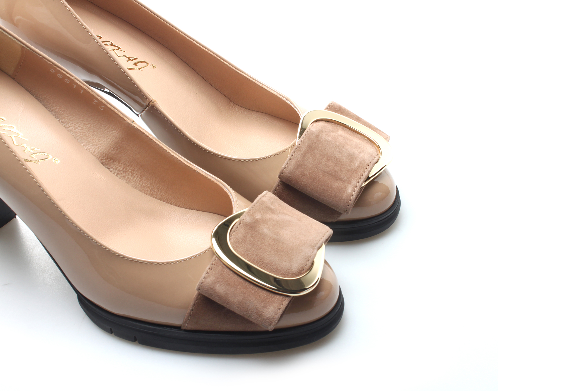 豪麟名鞋奥莱进口迪嘉女鞋皮鞋牛移膜革Z25511P杏色 原价3660元