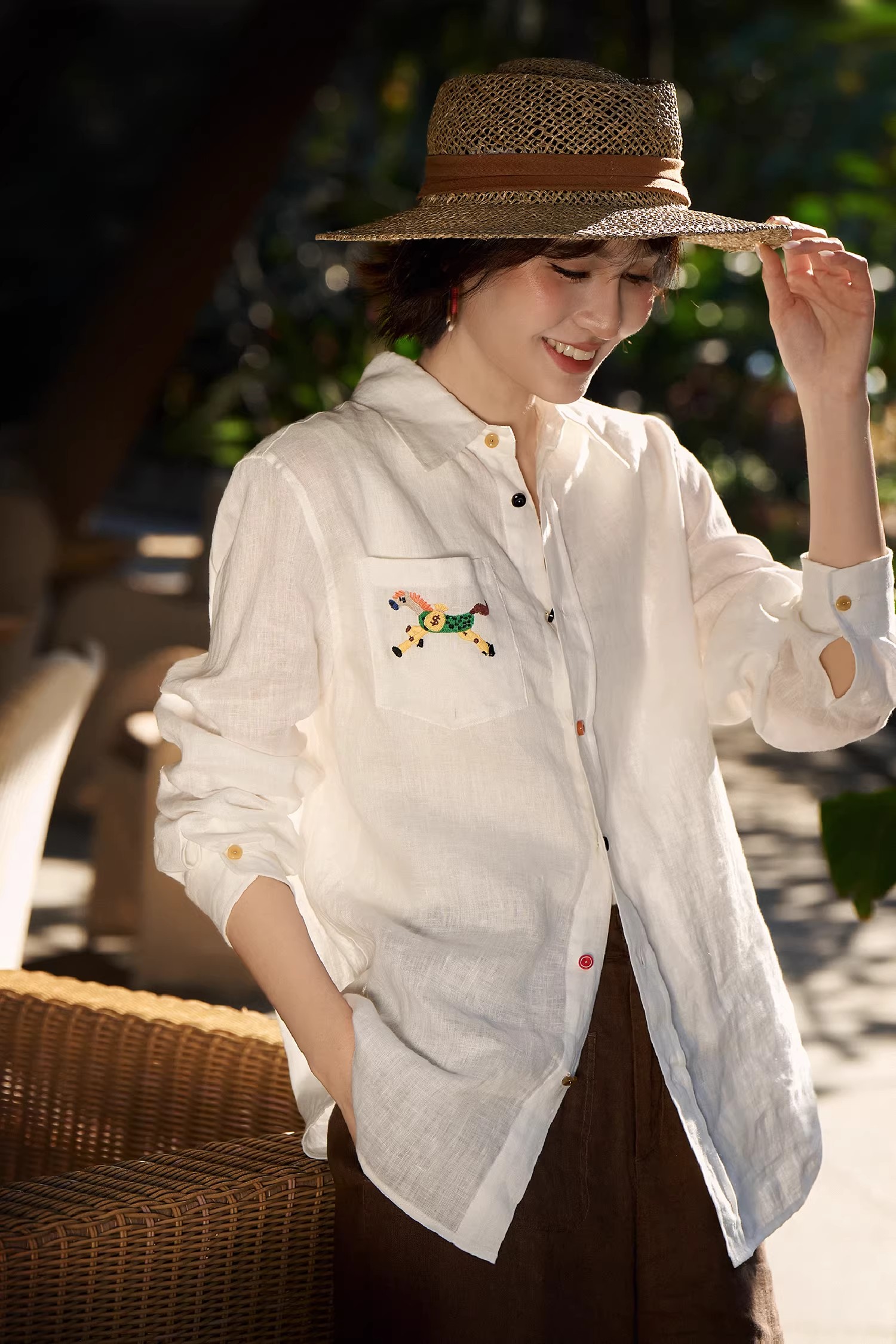 刺绣亚麻衬衣,老钱风高级感,把松弛感焊在身上【G】