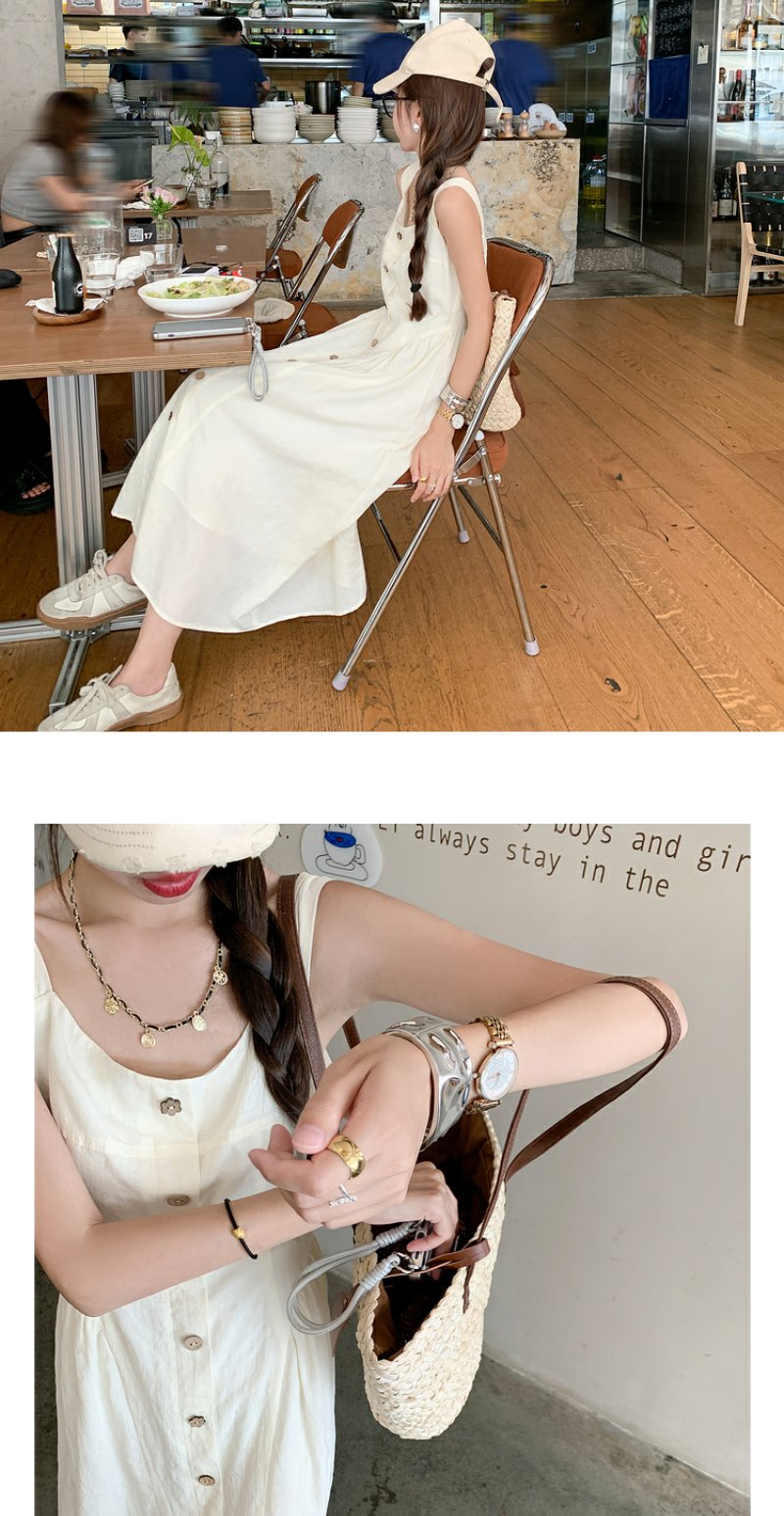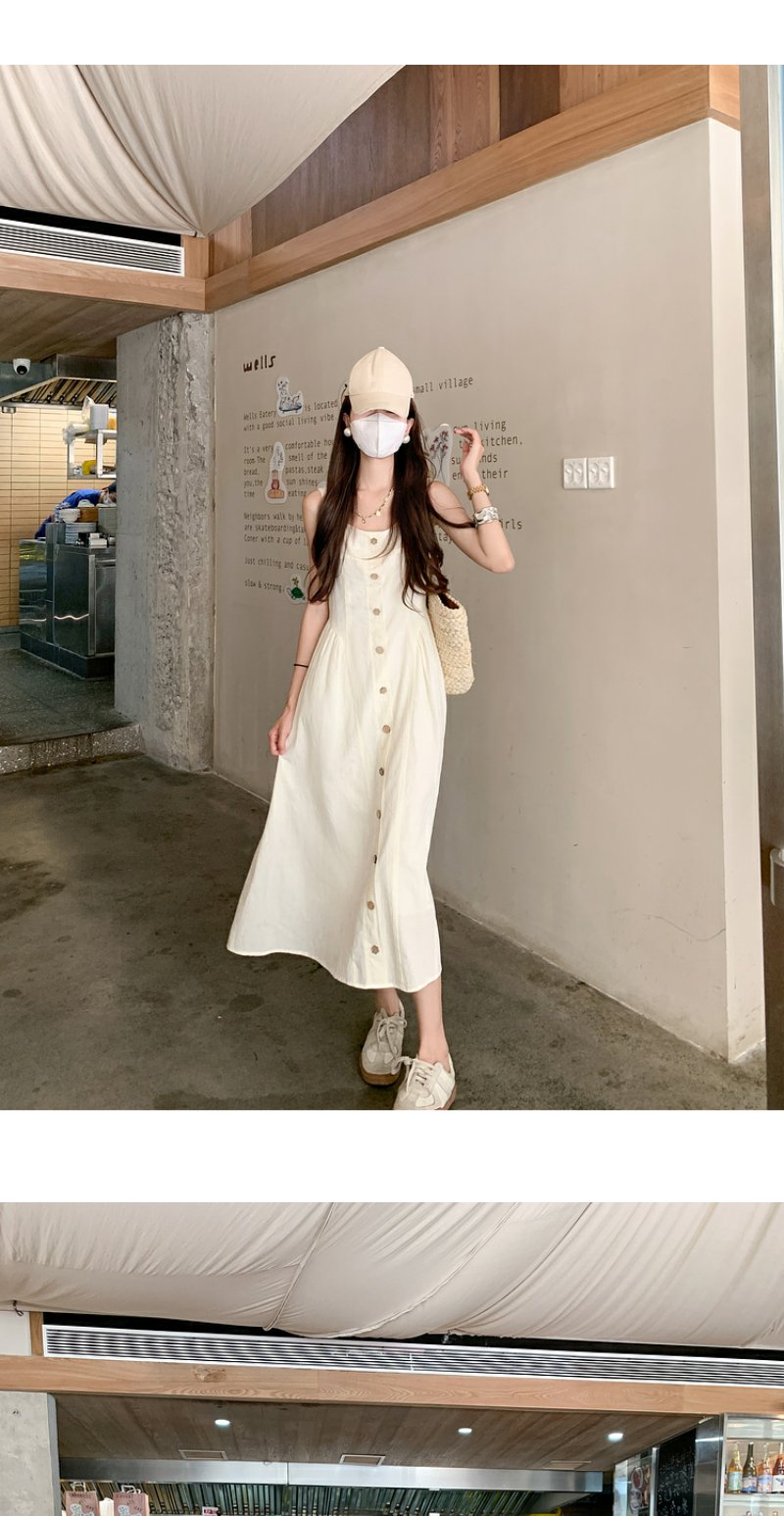<曾小咸推荐>【杏仁气泡】杏色吊带长裙