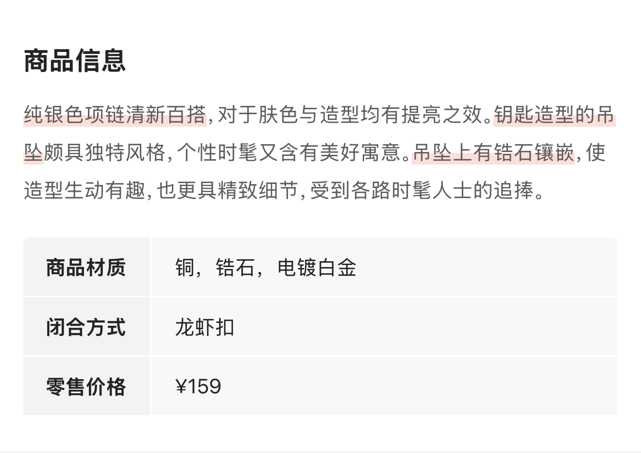 OUDAL奥黛儿 钥匙吊坠银色项链 7057