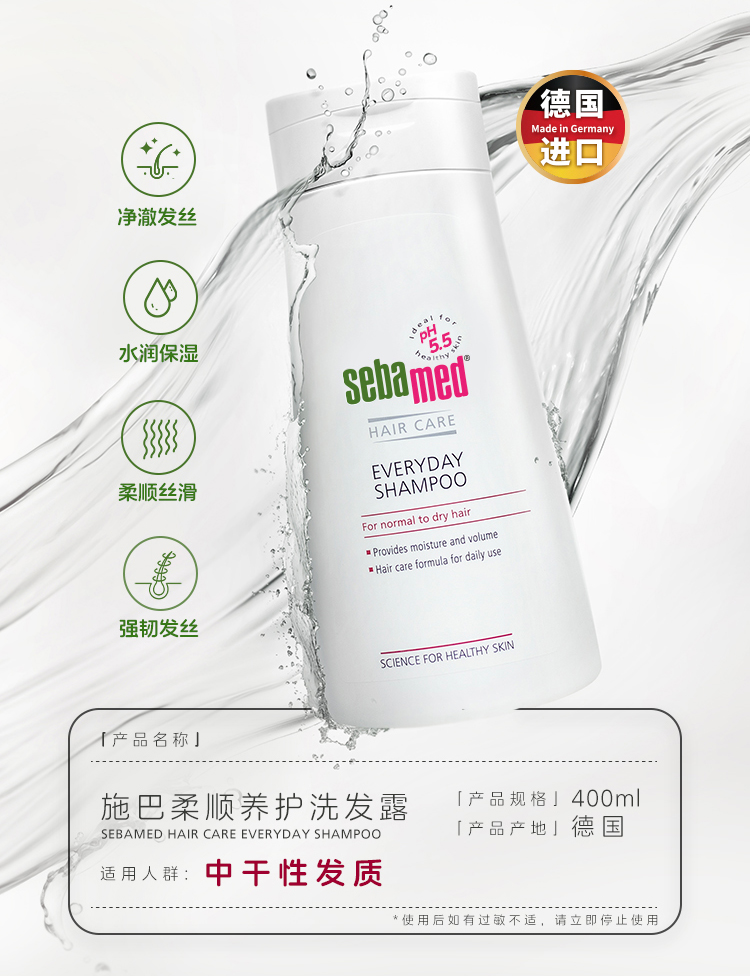 【品名】德国施巴柔顺养护洗发水400ml