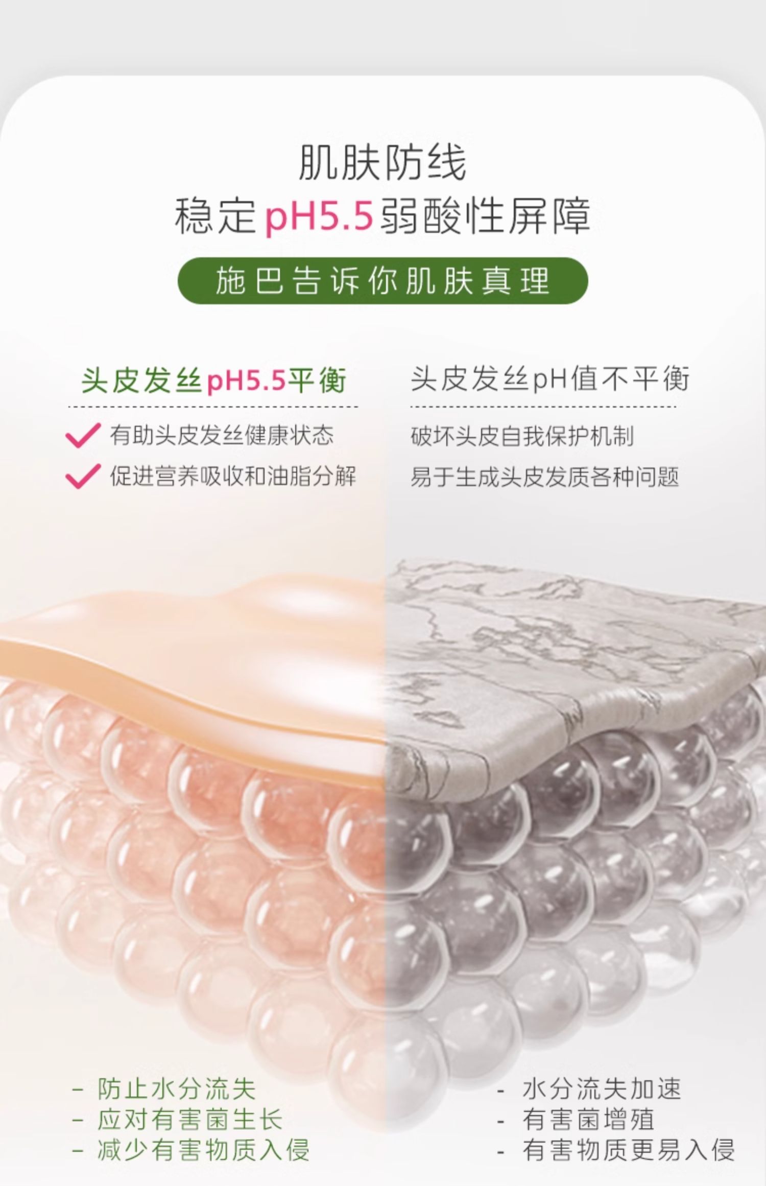 施巴的洗护产品没有浮夸的宣传,更没有铺天盖地的营销,德系严谨刻在品牌DNA里!PH5.5温和配方,不含刺激成分,呵护发丝和毛囊,从源头解决脱发困扰!