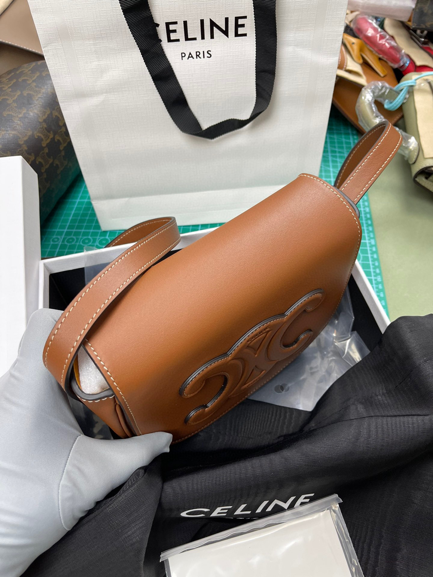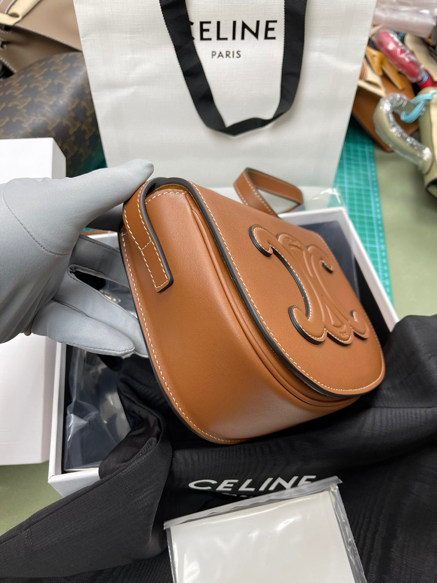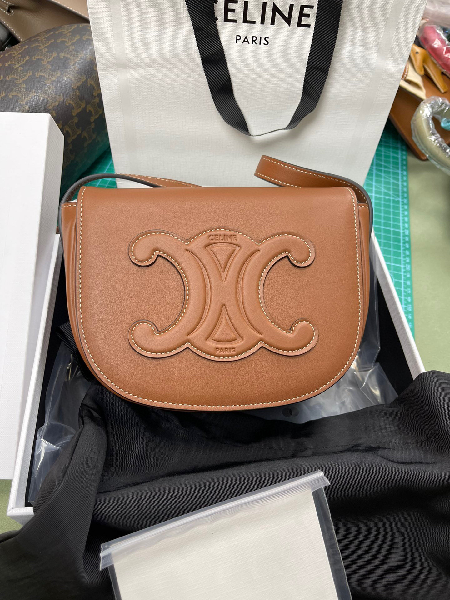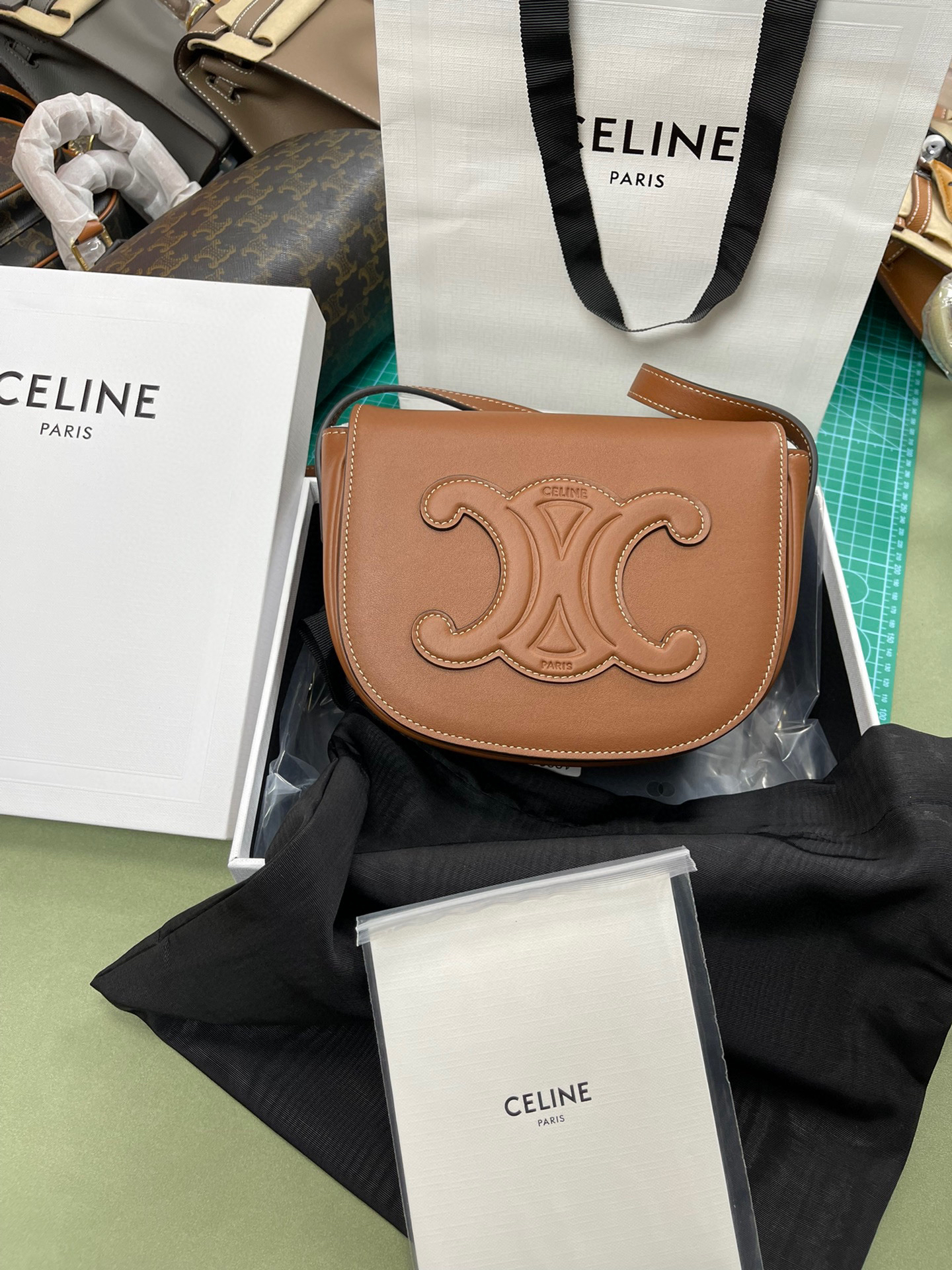 原厂皮Celine全皮马鞍包