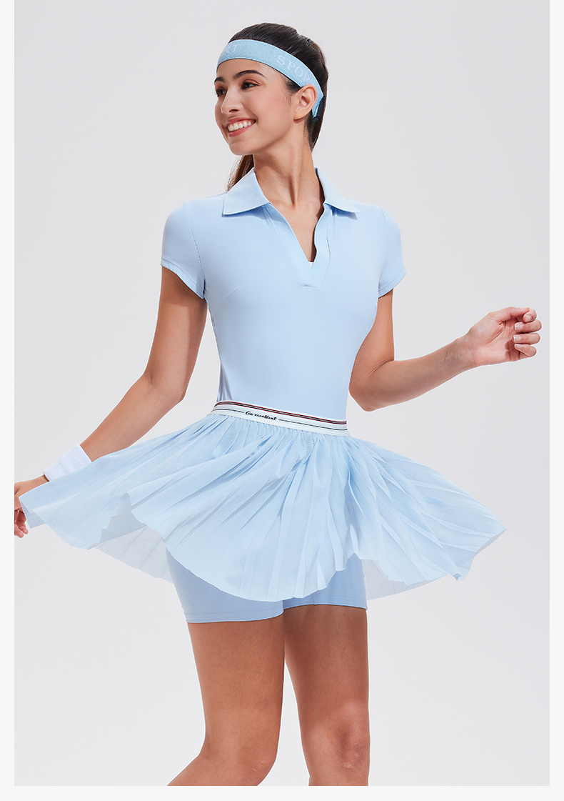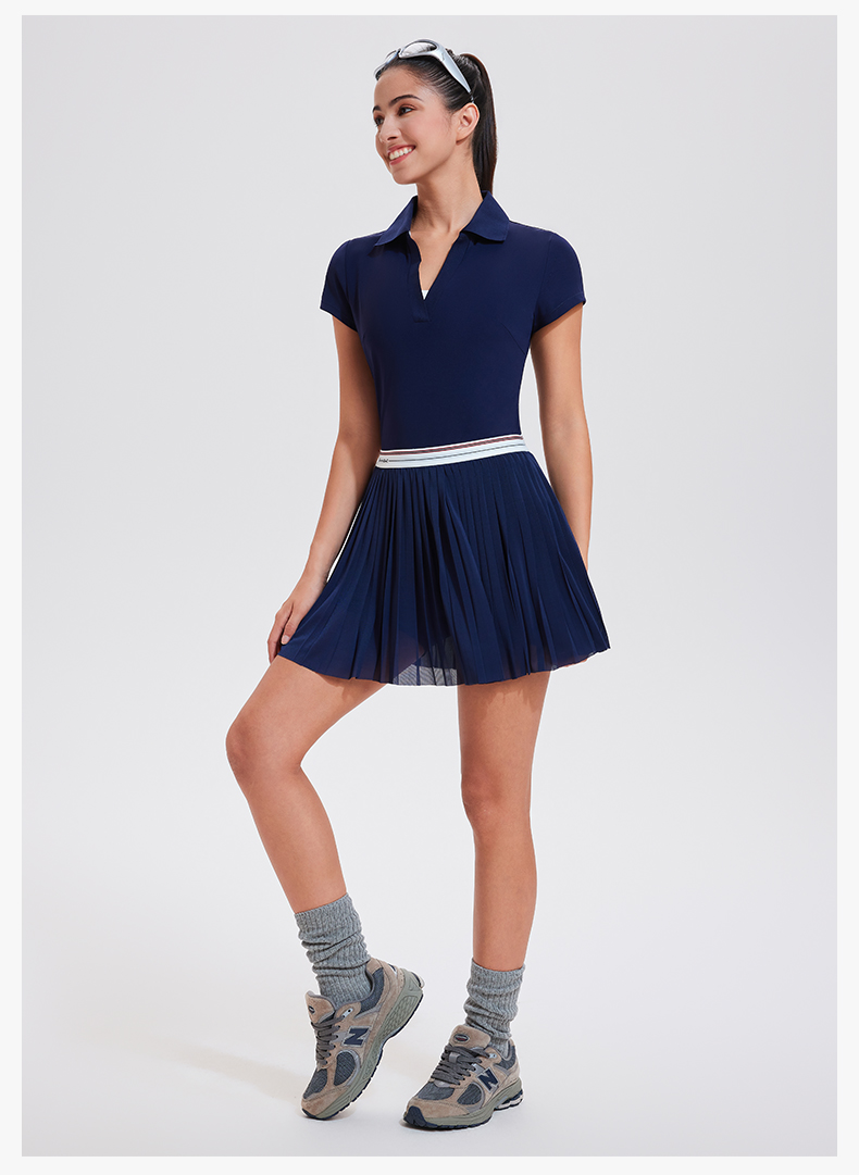 【2025上新】科里芙V领T恤休闲复古速干百褶短袖常规城市纯色翻领