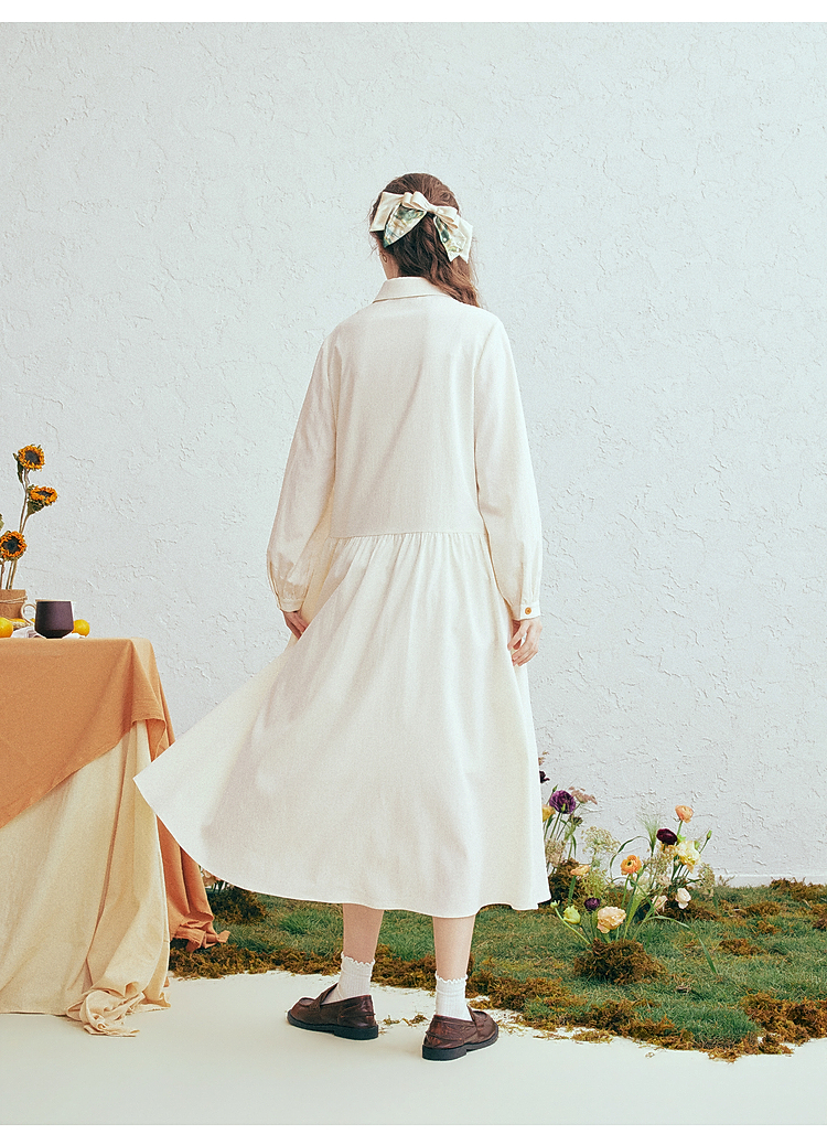 【限时秒杀89/不退换,介者慎拍】两三事秋季新款文艺风抽绳收腰灯笼袖连衣裙