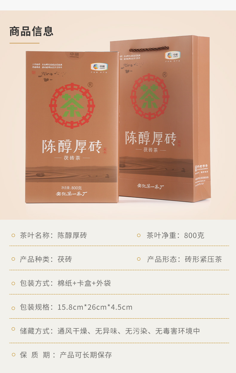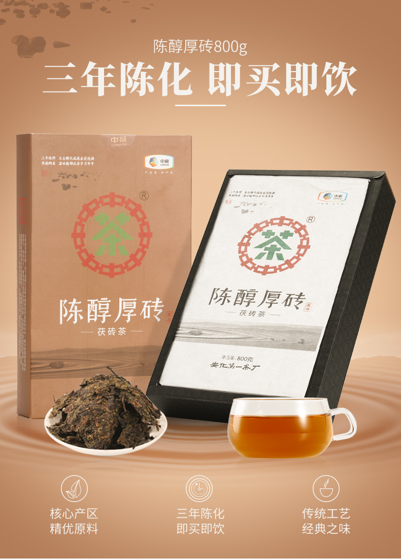 2022年中茶安化黑茶陈醇厚砖800g老茶金花茯砖茶湖南茶叶