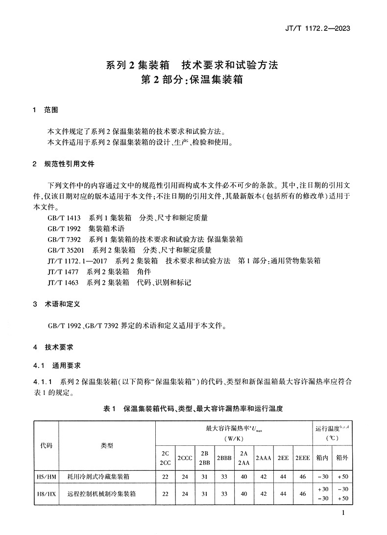 书名:系列2集装箱 技术要求和试验方法 第2部分:保温集装箱(JT/T 1172.2—2023)
