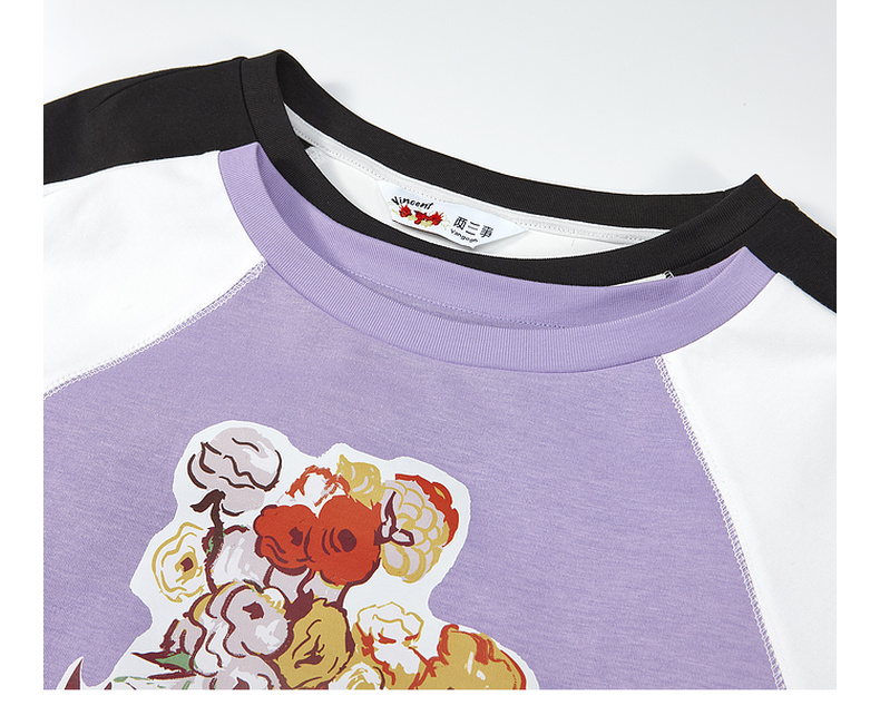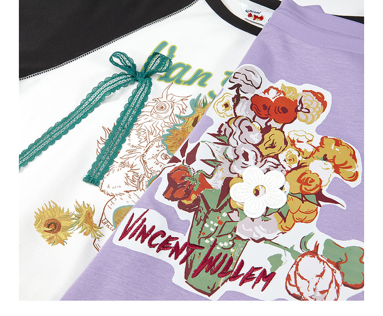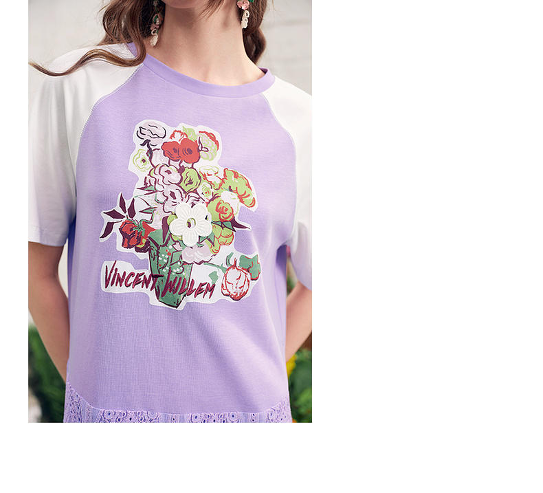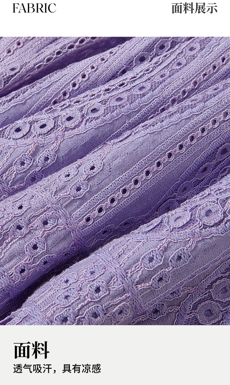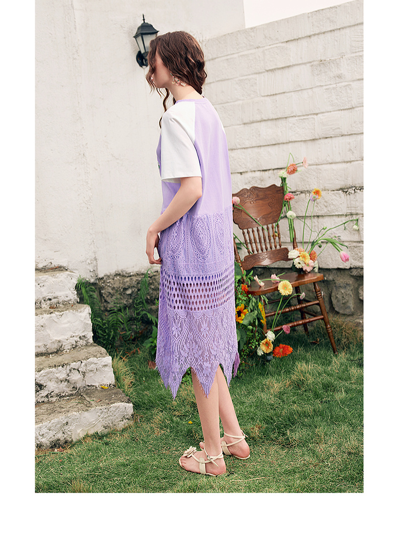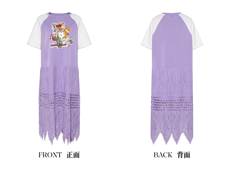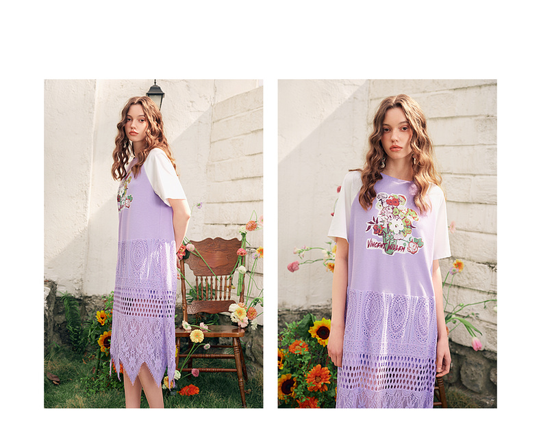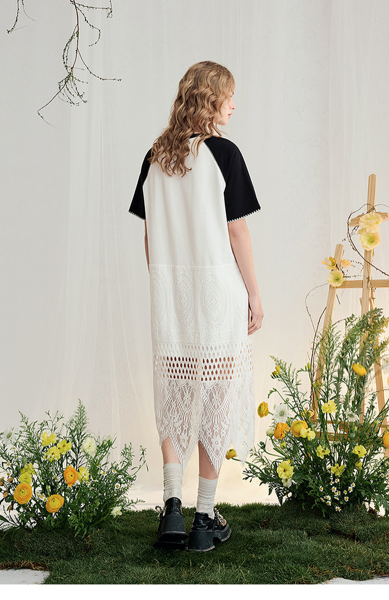 两三事梵高文艺薄荷心事2025夏新款镂空蕾丝裙摆印花t恤裙连衣裙