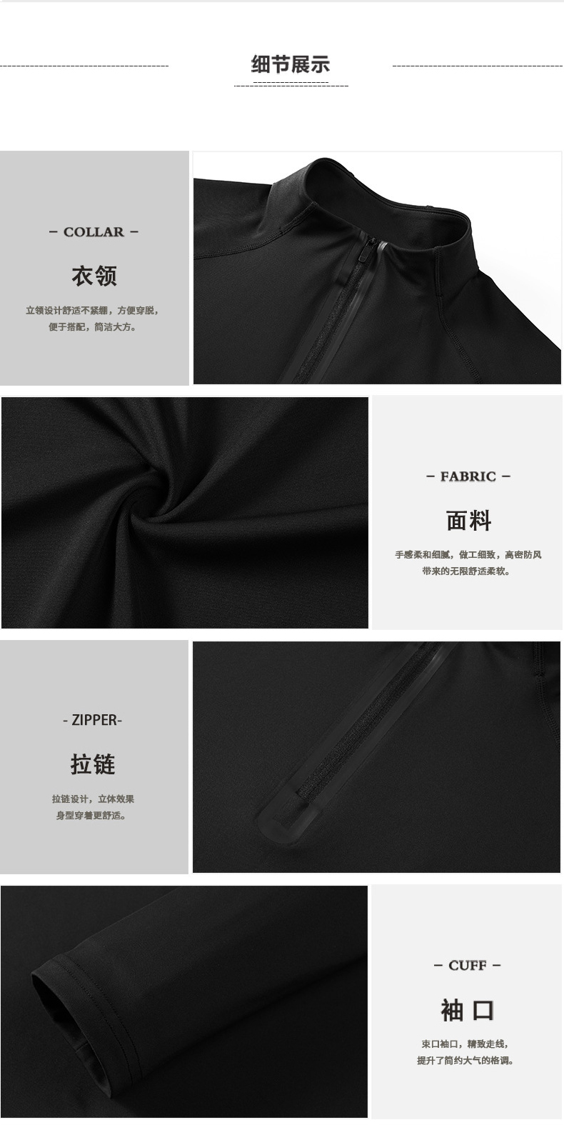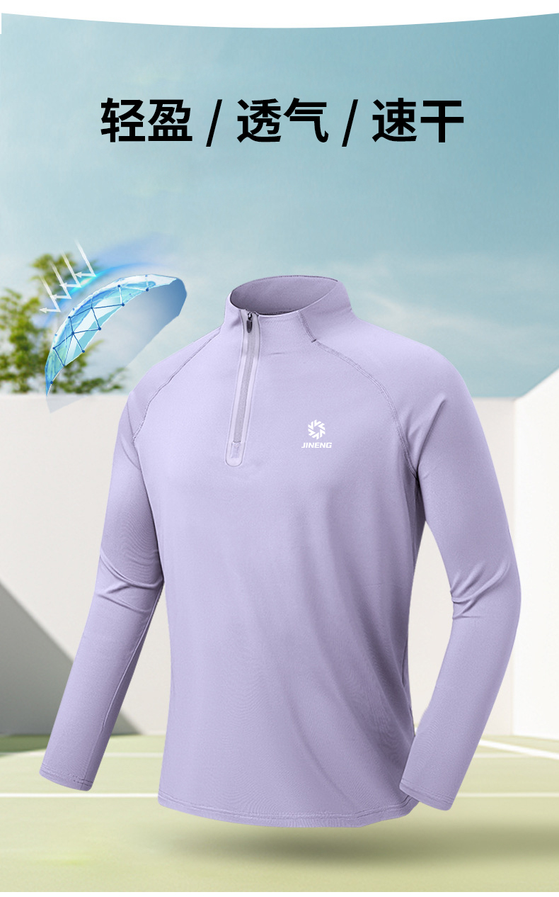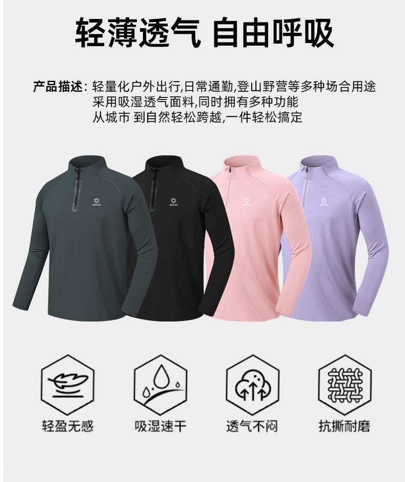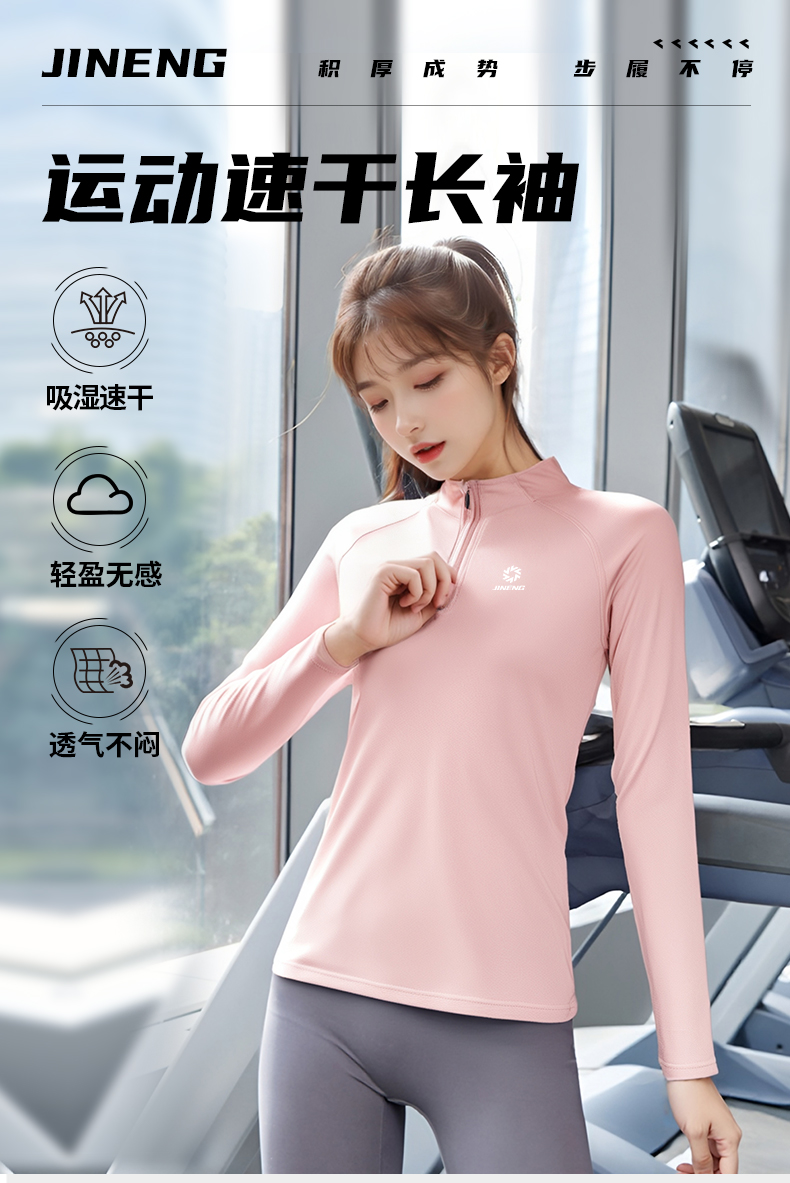 积能 户外速干衣运动T恤男女春秋立领修身运动上衣跑步瑜伽训练服