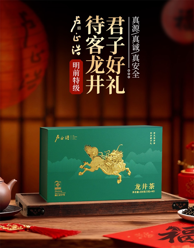 【2026年新茶预售】卢正浩龙井茶麒麟礼盒明前绿茶高端送礼茶叶200g送长辈老丈人