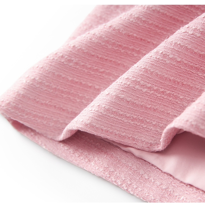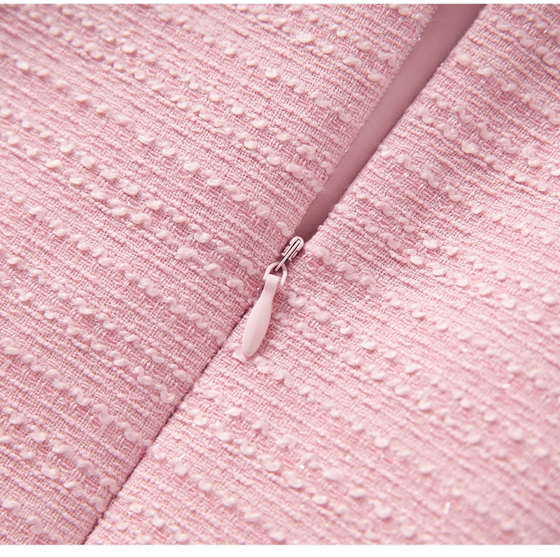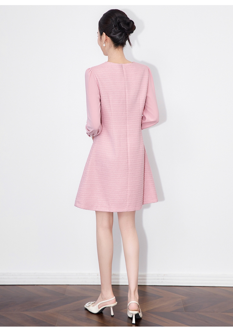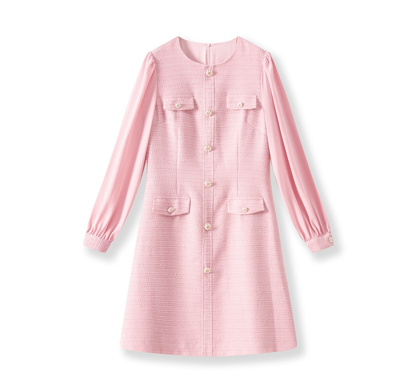 小香风优雅圆领长袖单排扣后拉链收腰连衣裙