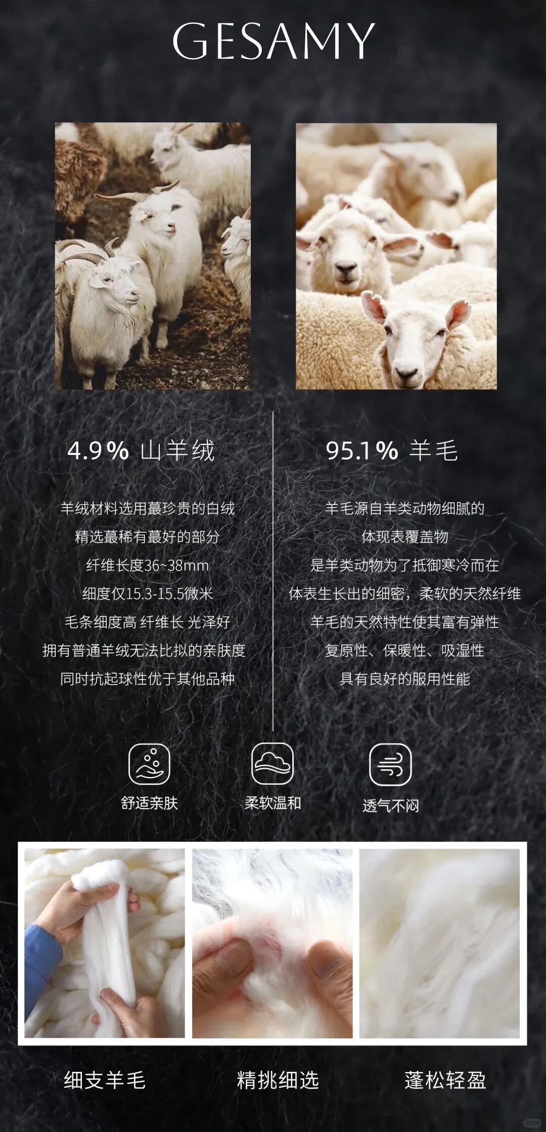 ✅ 4.9%羊绒+95.1%绵羊毛材质 柔软细腻