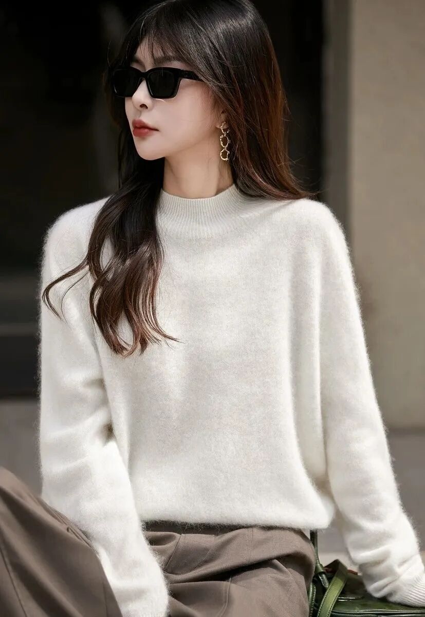 惬意感拉毛羊绒羊毛半高领