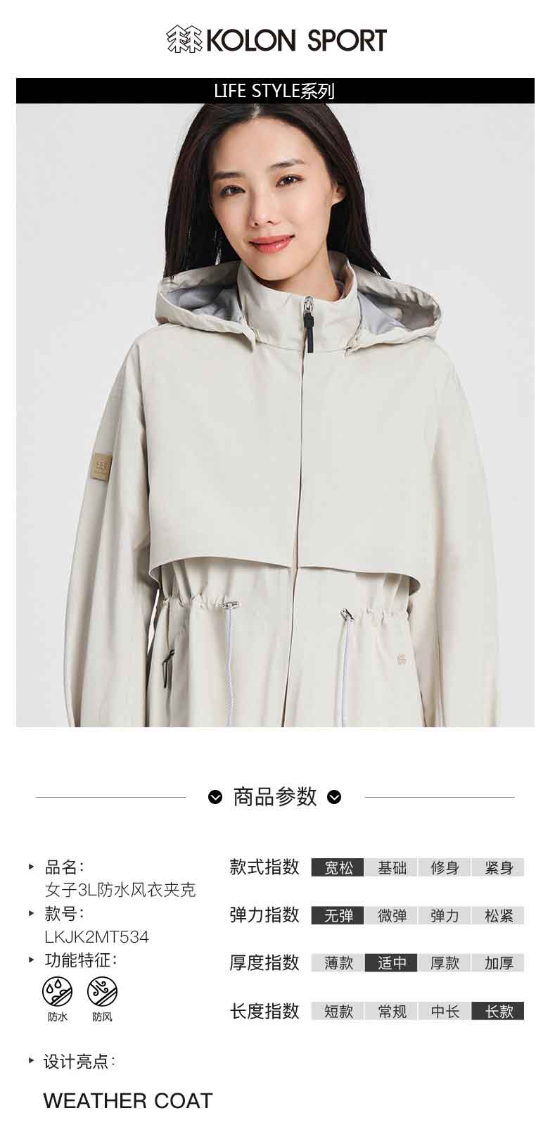 KOLONSPORT可隆夹克防水女款户外休闲衣防风上衣运动外套冲锋衣LKJK2MT534
