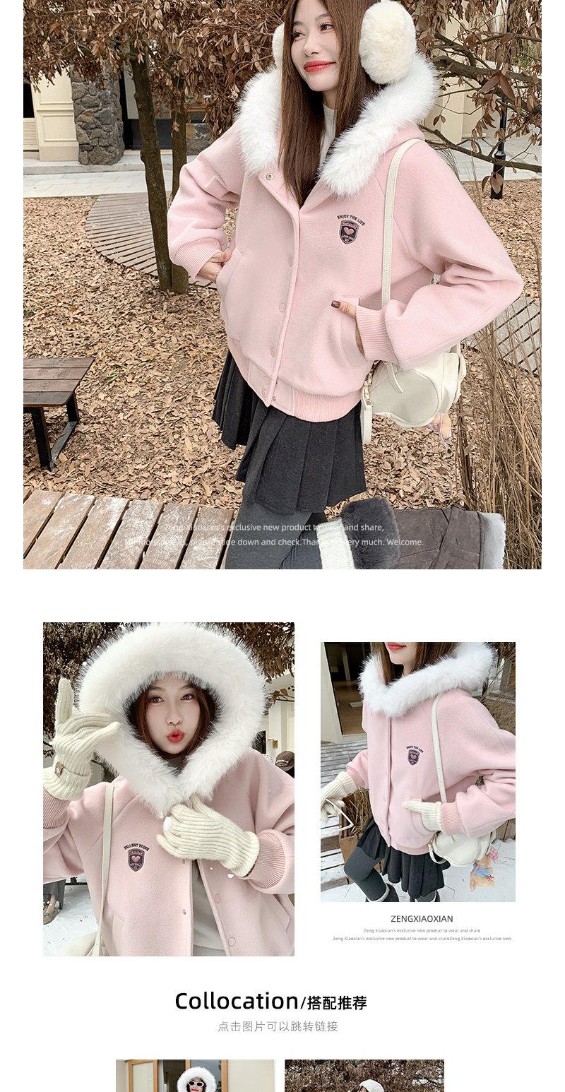 <曾小咸推荐>现货秒杀 !微信超特价!韩系毛绒连帽毛呢外套 日常369.99 立减180 秒杀189.99!!