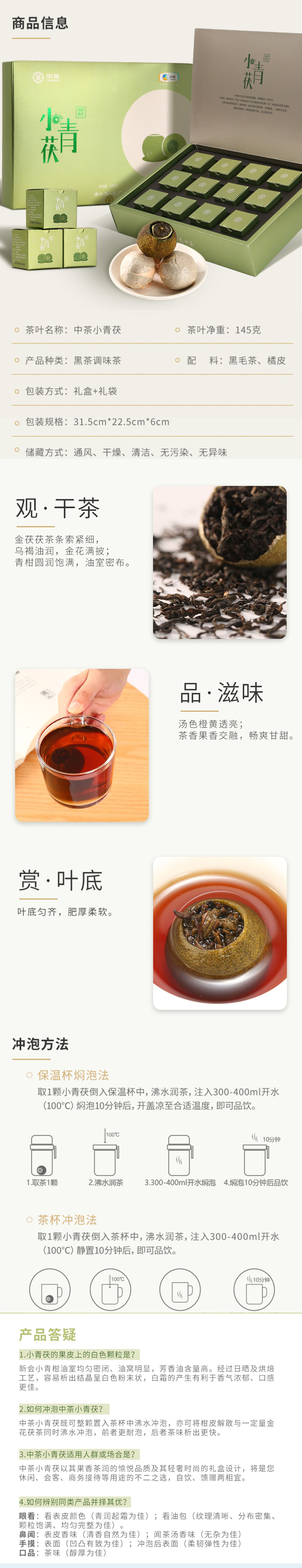中粮-中茶安化黑茶中茶小青茯正品礼盒小青柑金花茯茶145g