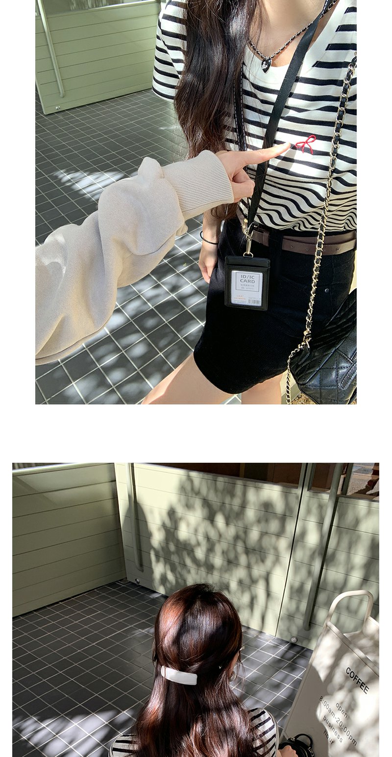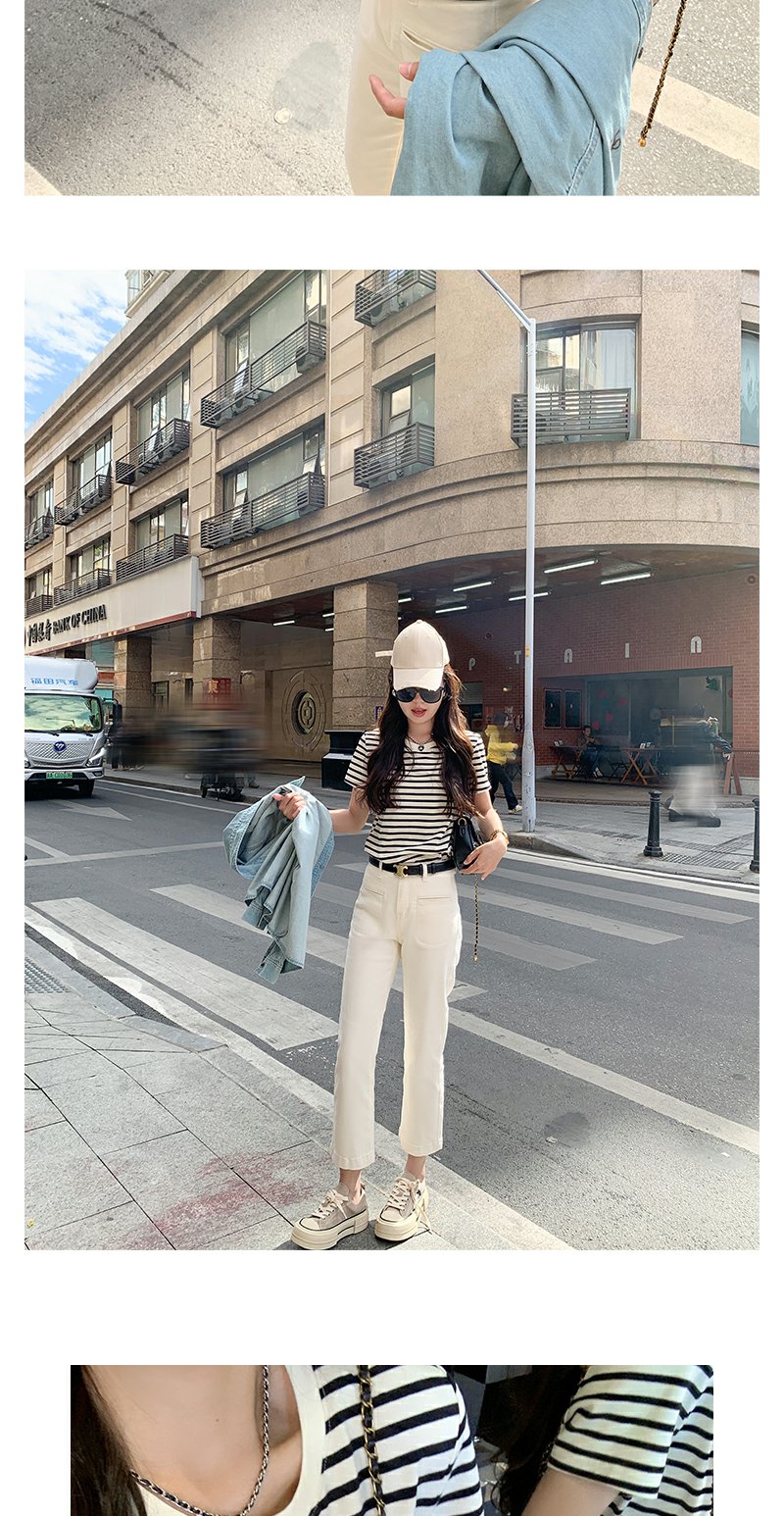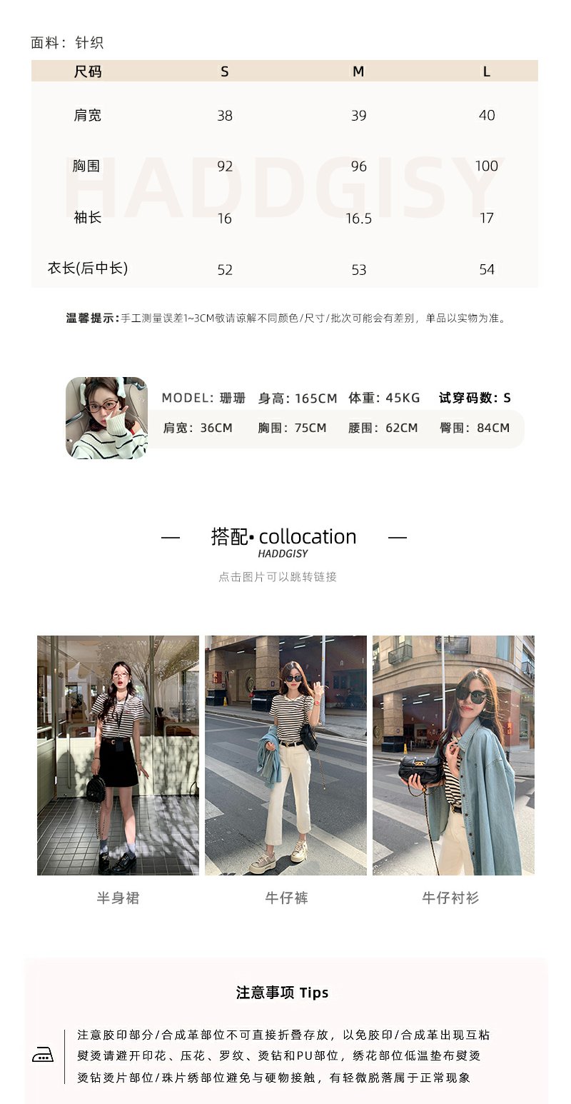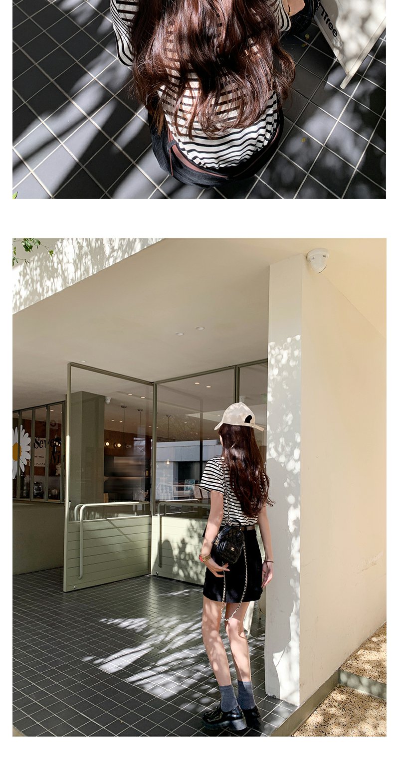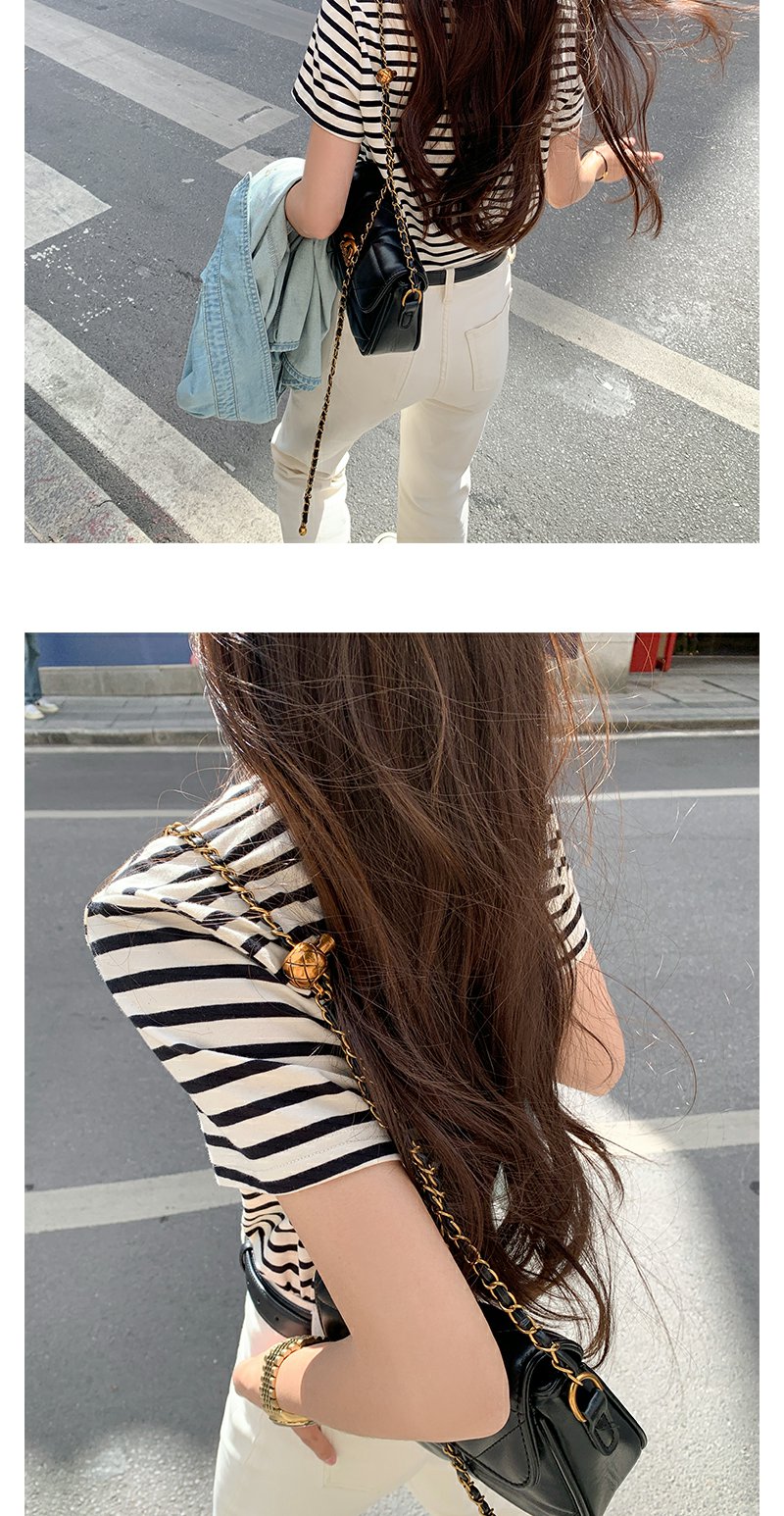 <曾小咸推荐>蝴蝶结小刺绣黑杏条纹圆领短袖T恤
