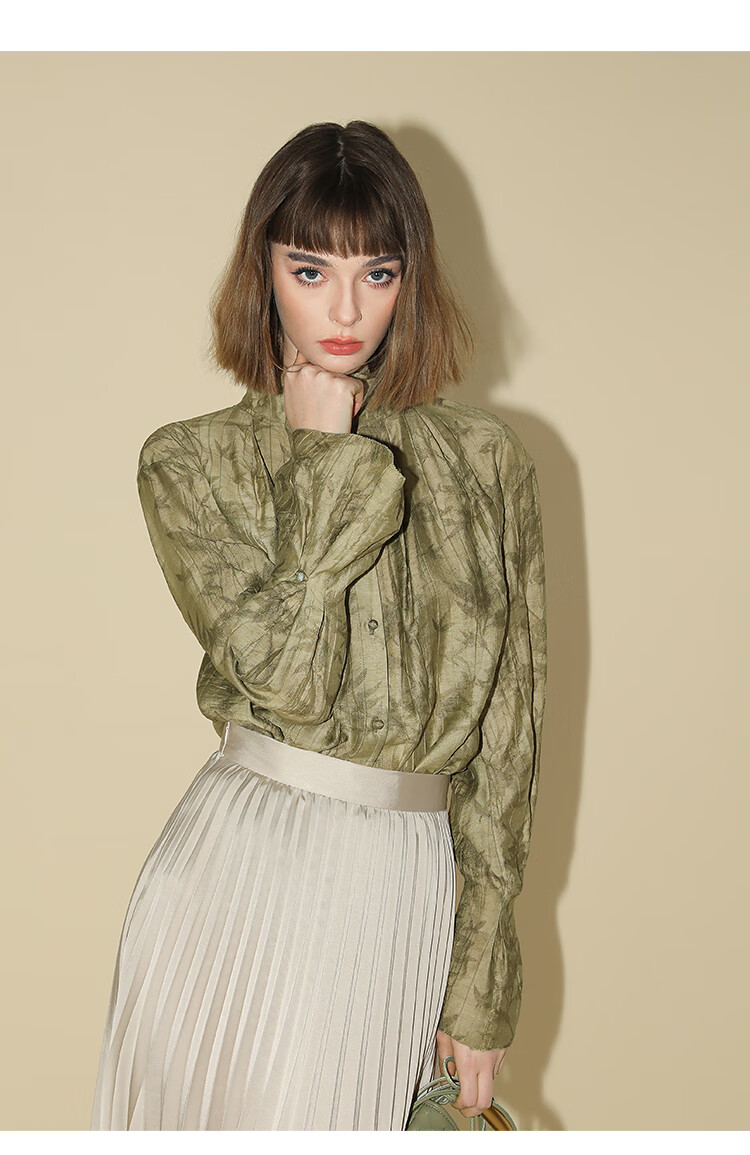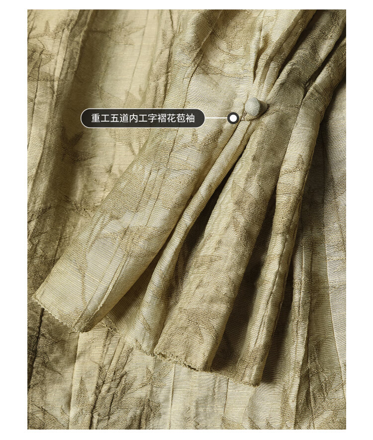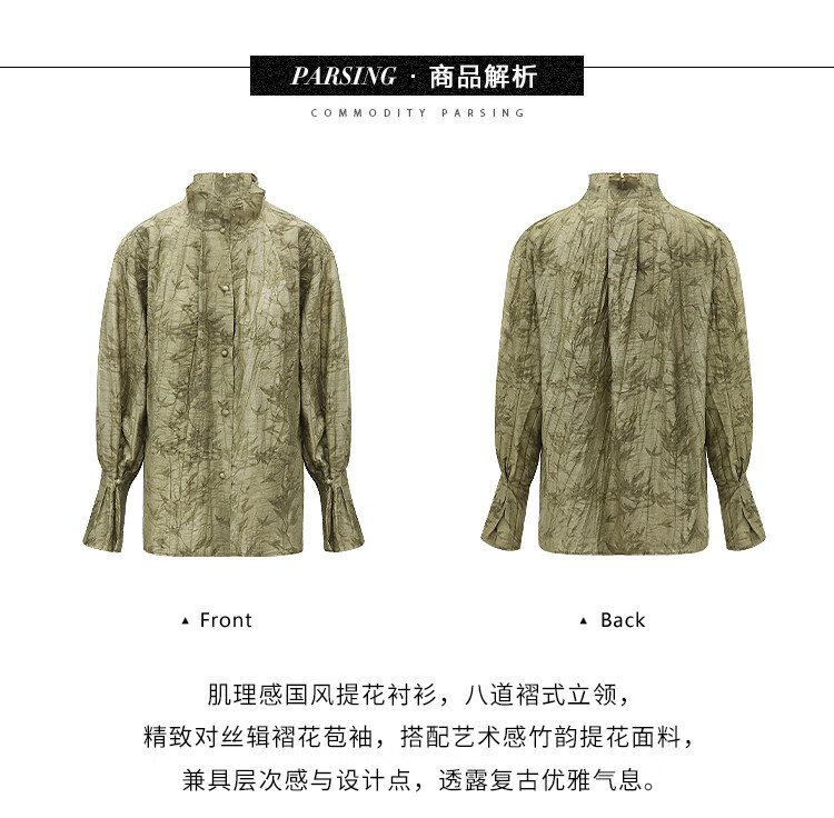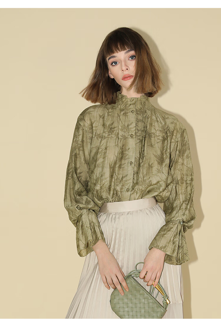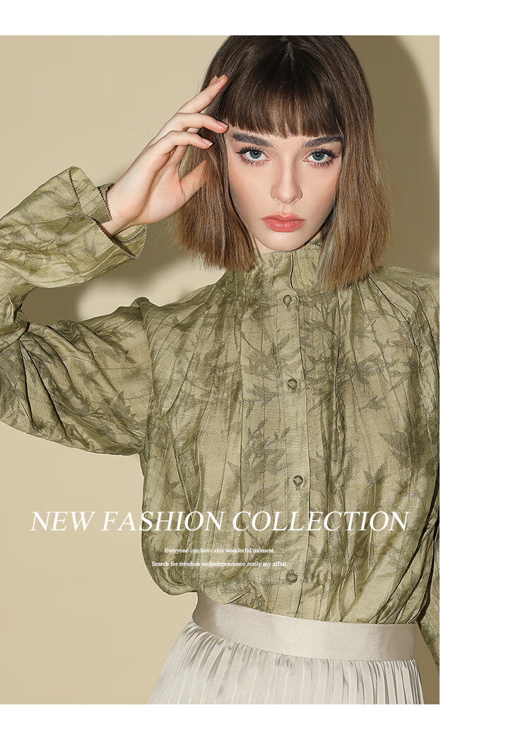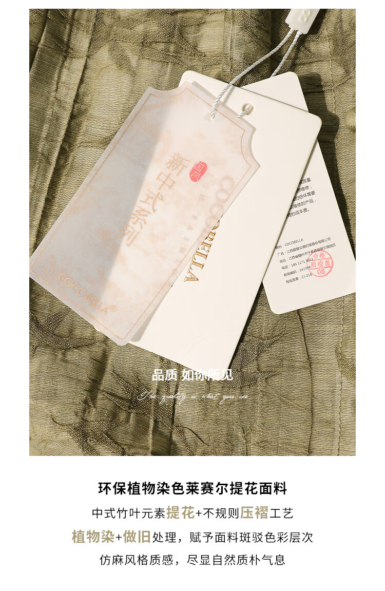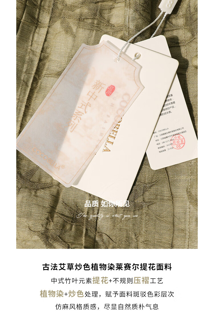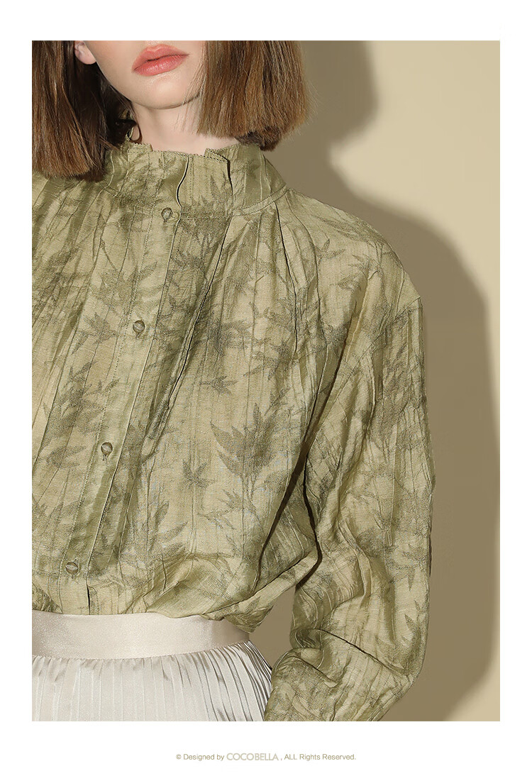 COCOBELLA竹叶提花压褶对丝衬衫新中式国风莱赛尔上衣SR0002