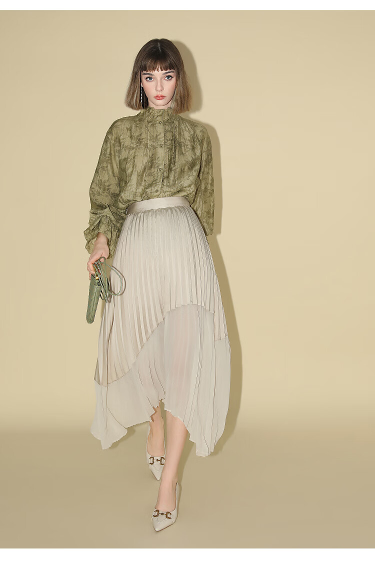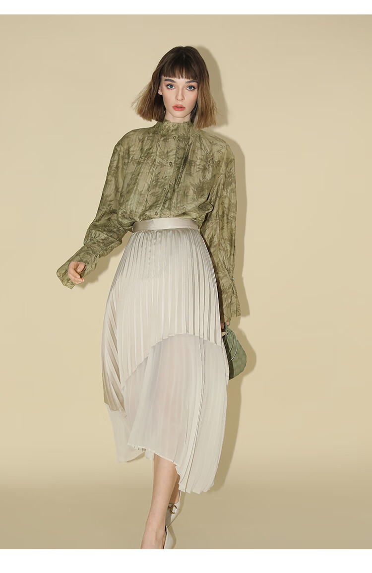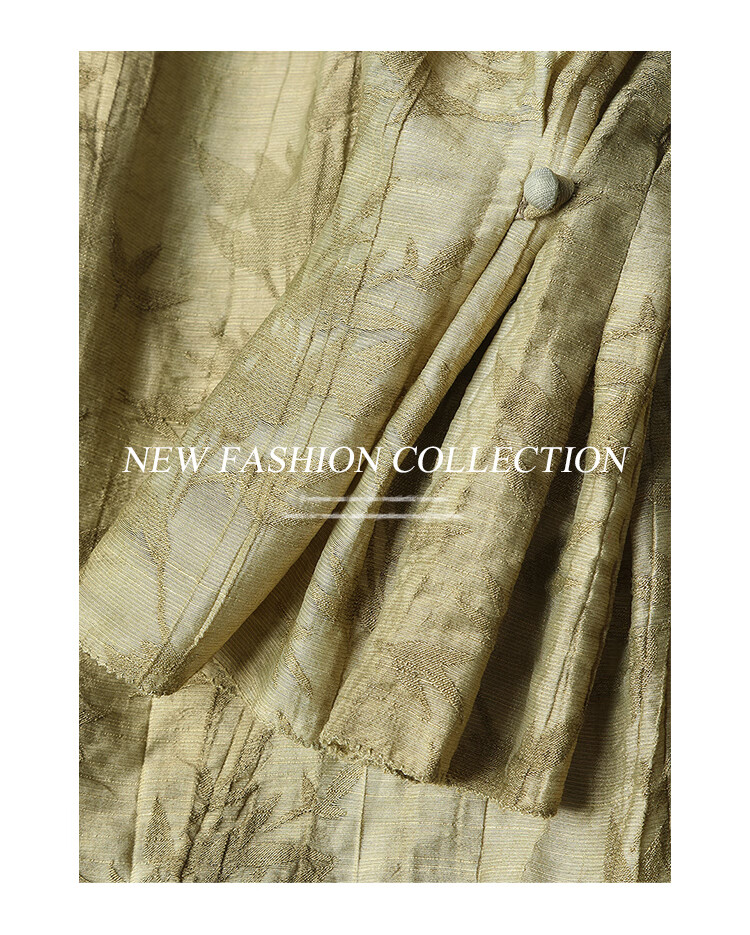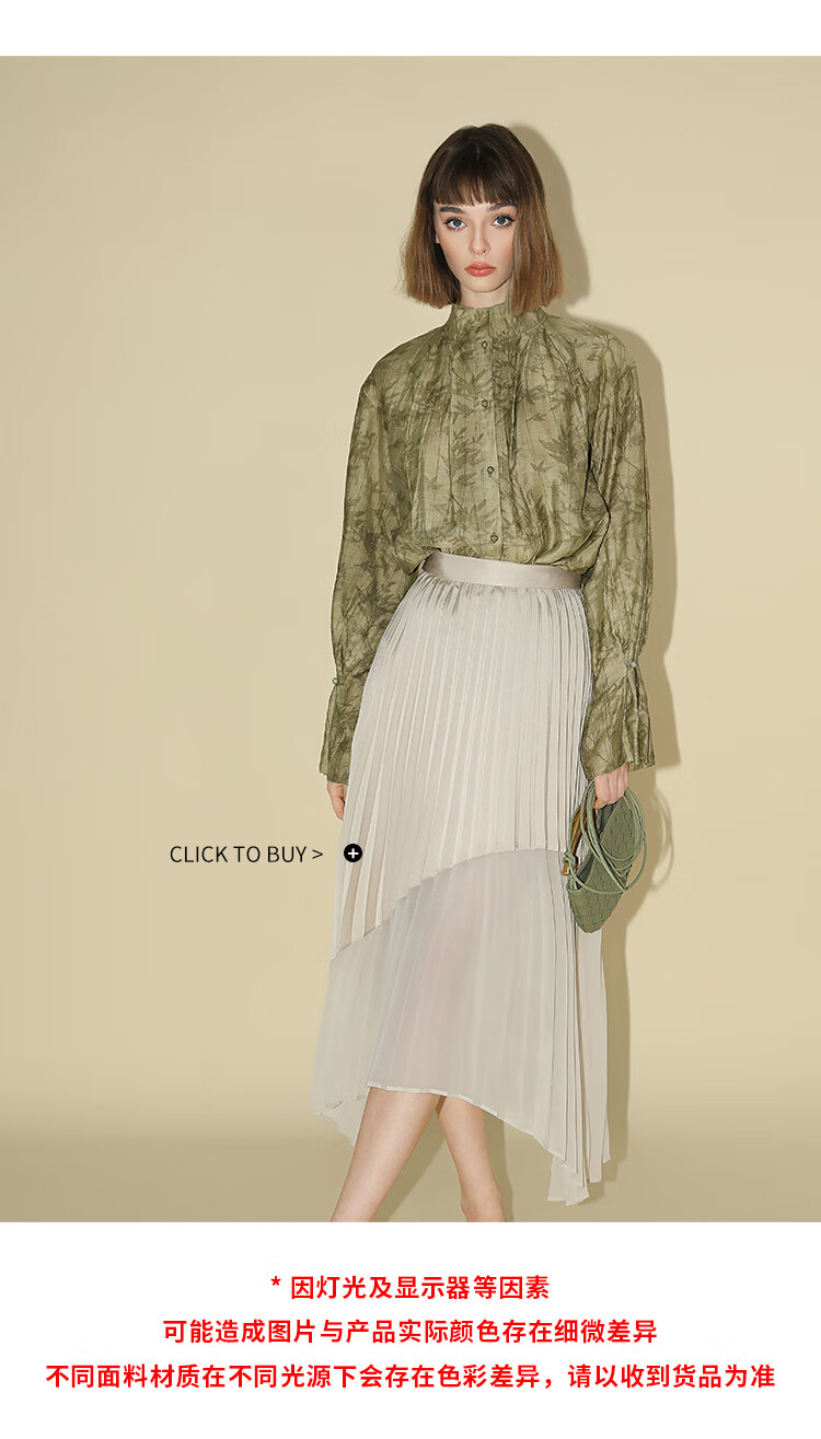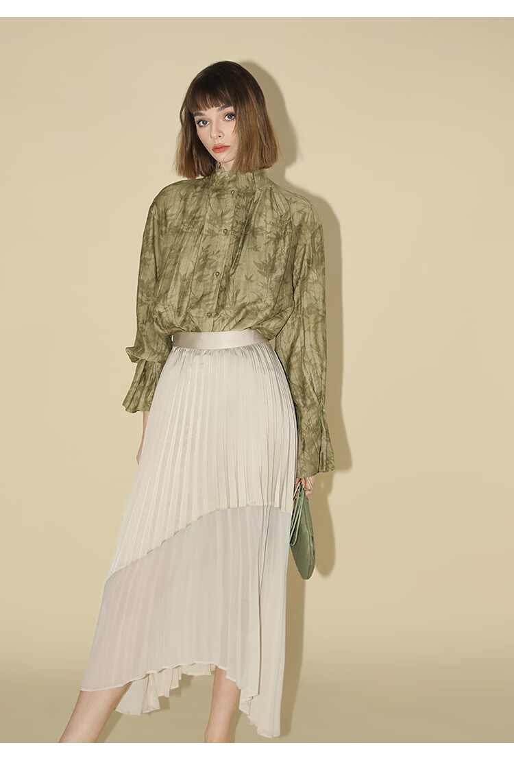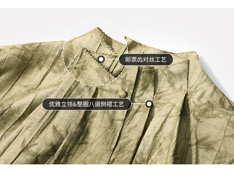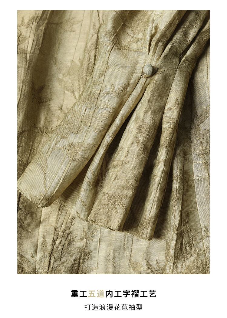 COCOBELLA竹叶提花压褶对丝衬衫新中式国风莱赛尔上衣SR0002