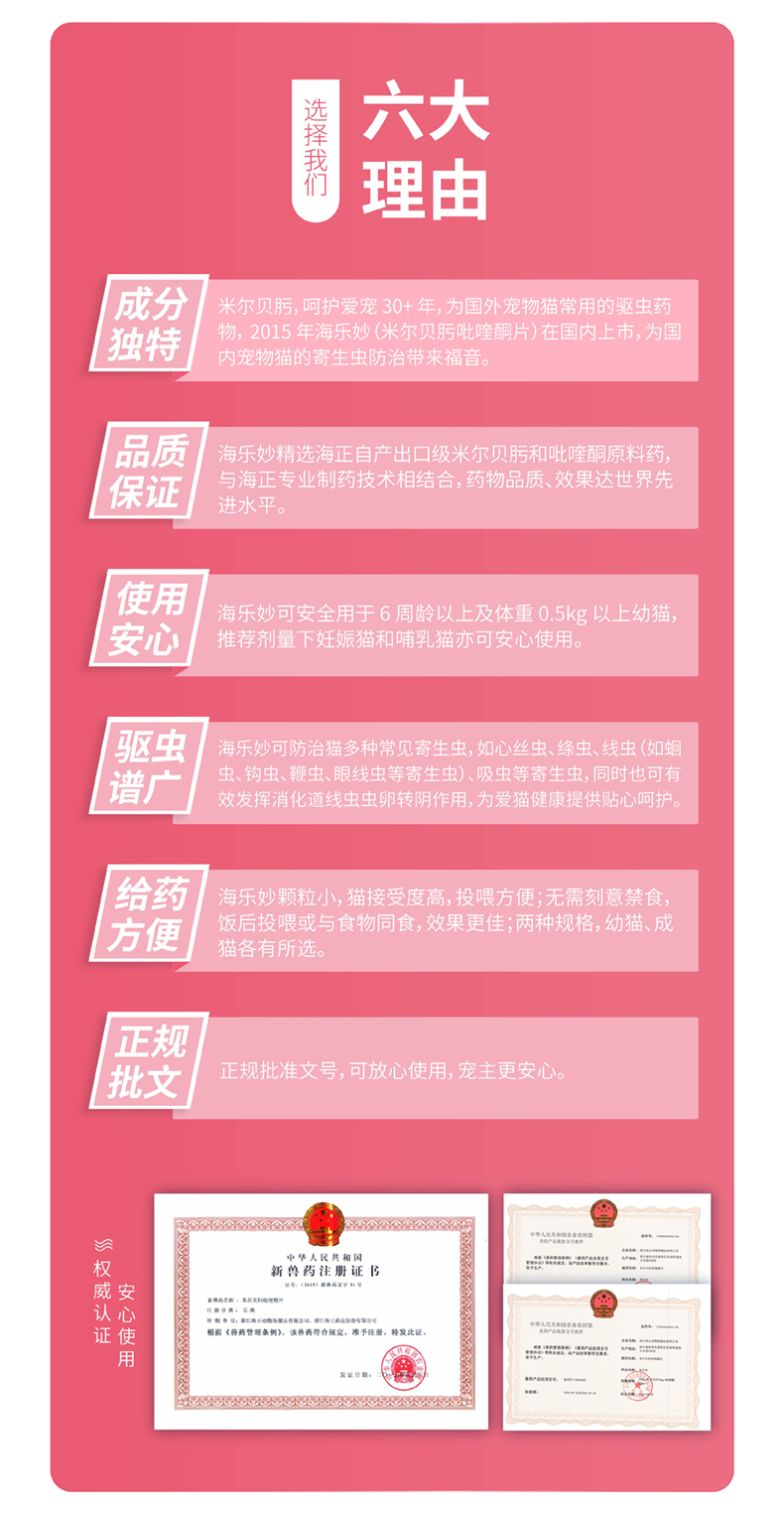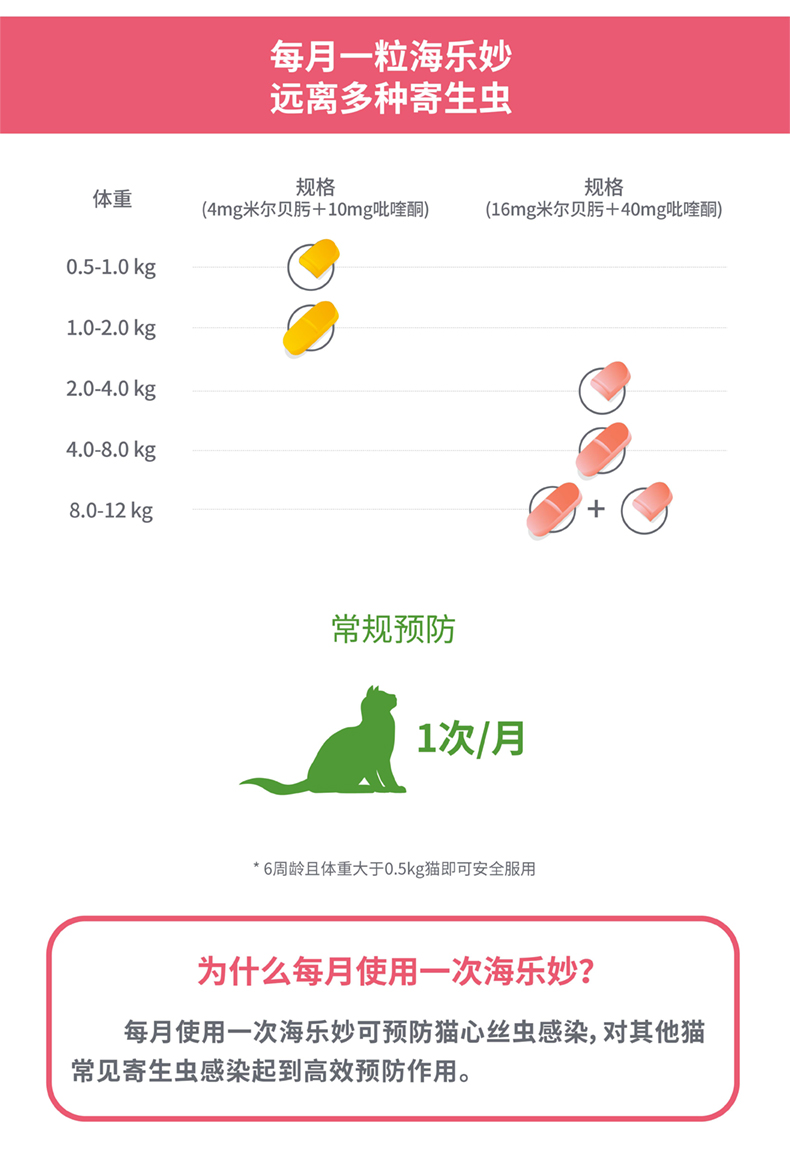 海乐妙 猫用体内驱虫药 米尔贝肟吡喹酮体内驱虫片