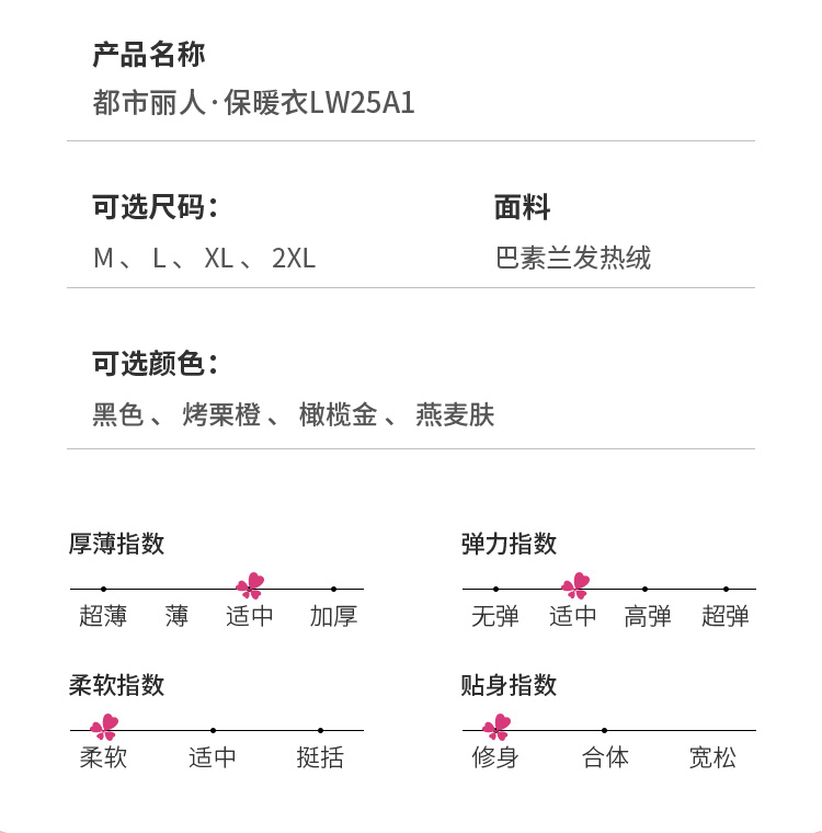 都市丽人轻暖5至15度女士发热纤维单件巴素兰发热绒薄单件上衣保暖衣LW25A1