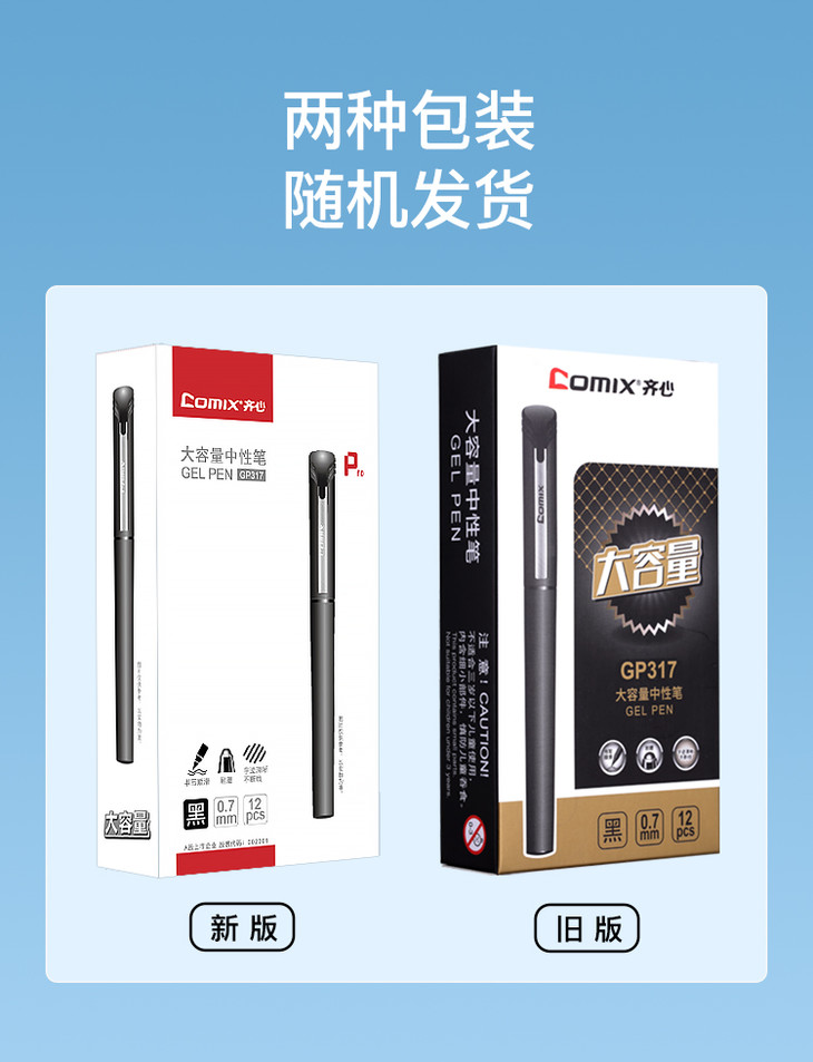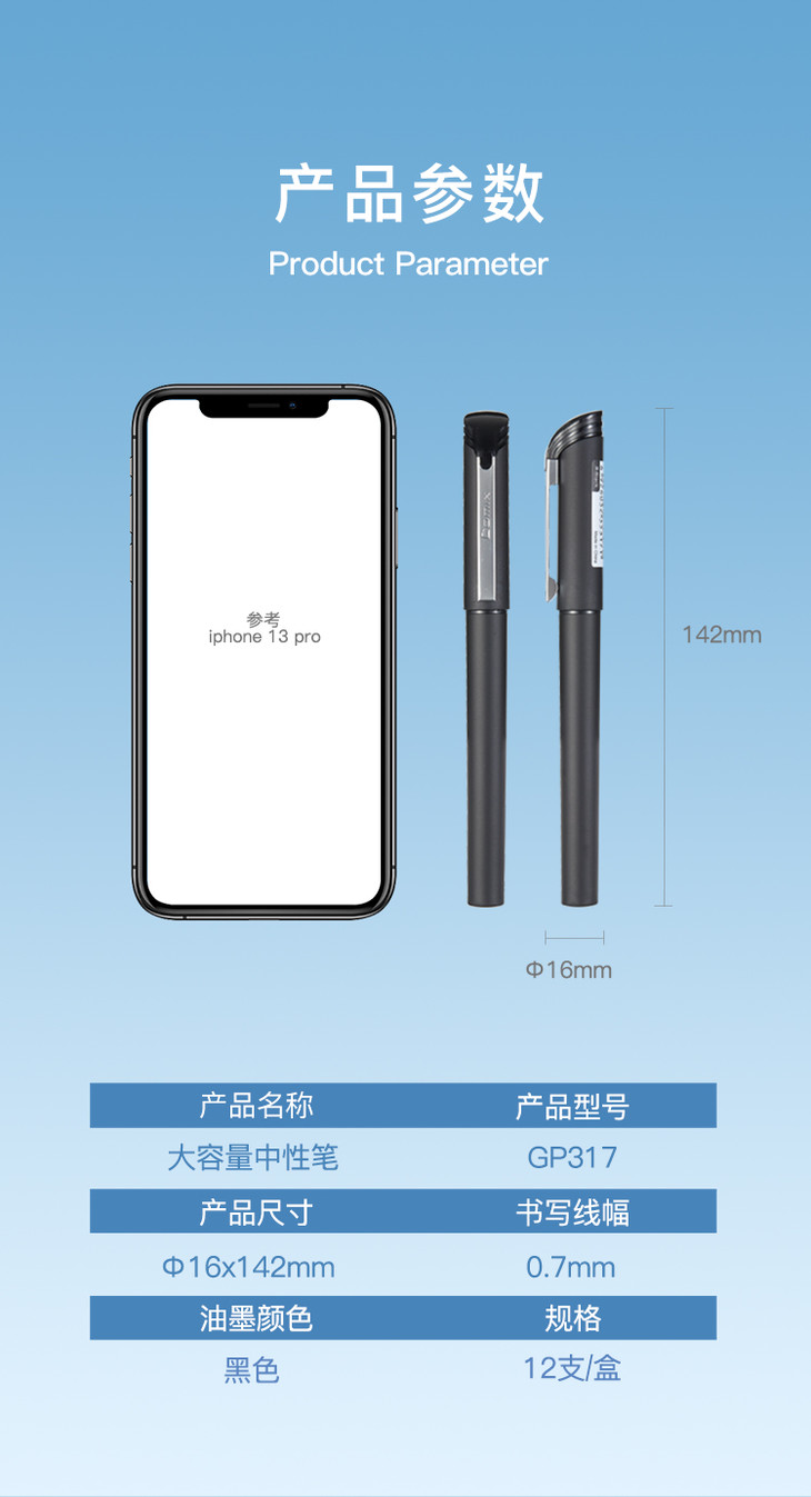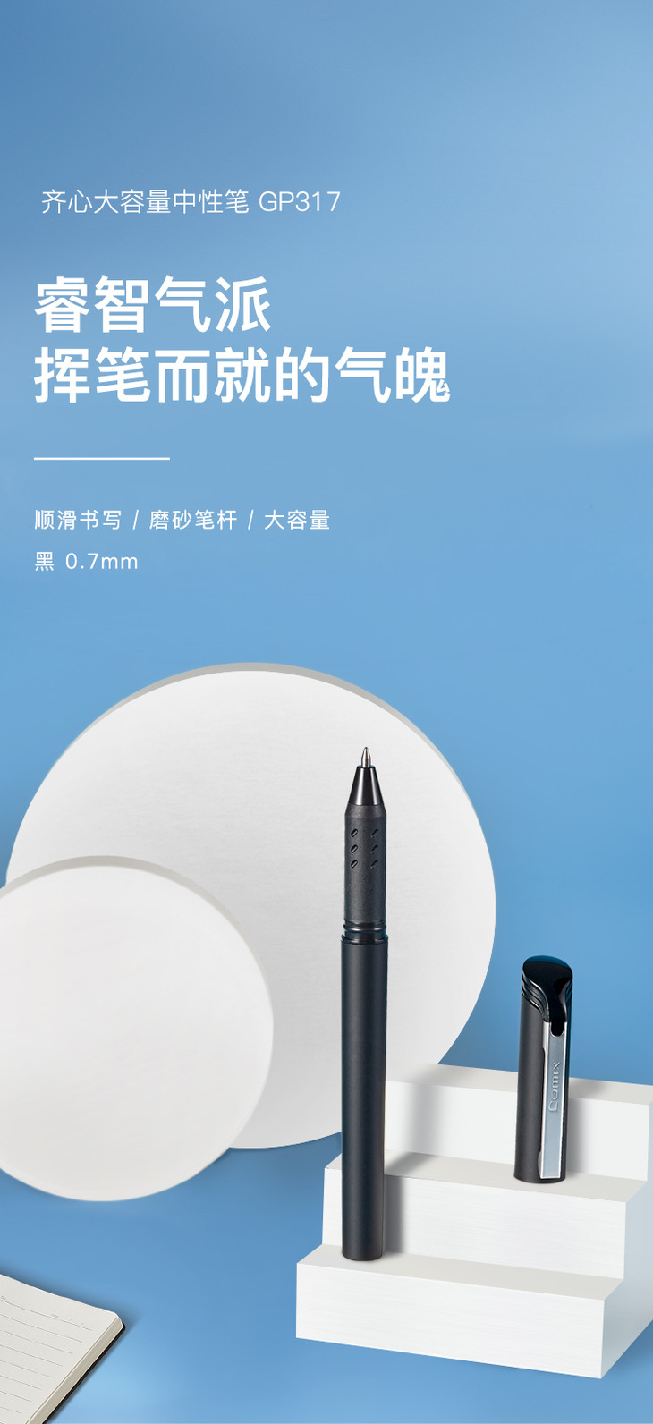 齐心中性笔GP317黑0.7(R912芯)